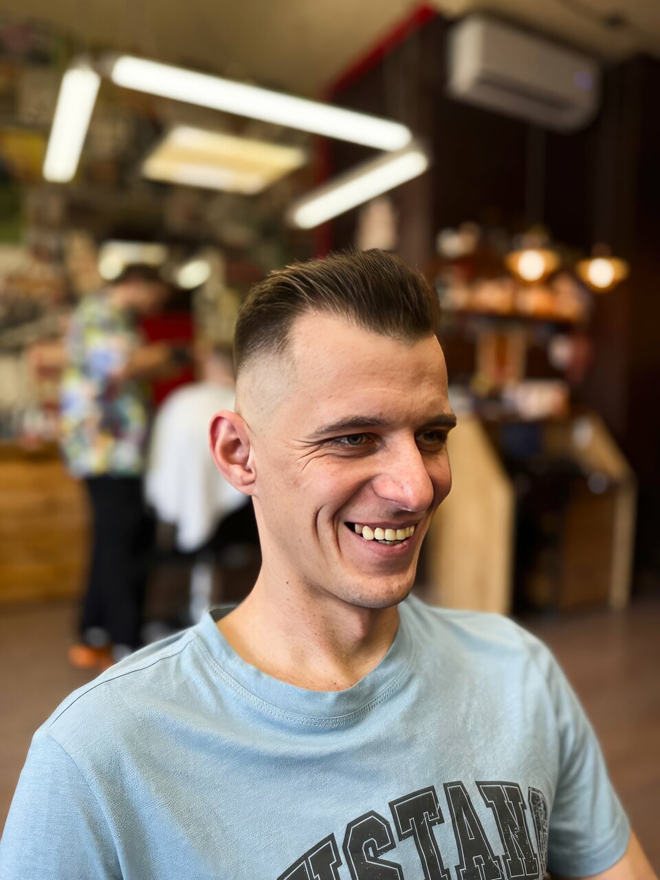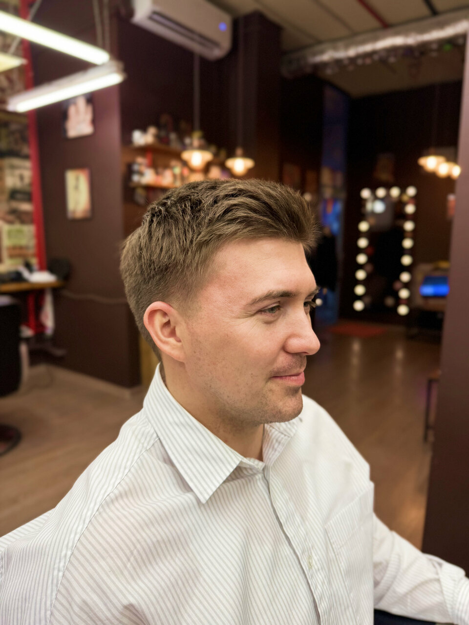 Недавно стригся, попал в счастливые часы. Классная расслабленная атмосфера, дружелюбный мастер, в общем получил удовольствие от процесса стрижки. Мастер также сам проявил инициативу и подсказал, что говорить его коллеге, чтобы постригли таким же образом, показал, как делать укладку и в итоге здорово постриг. Спасибо)