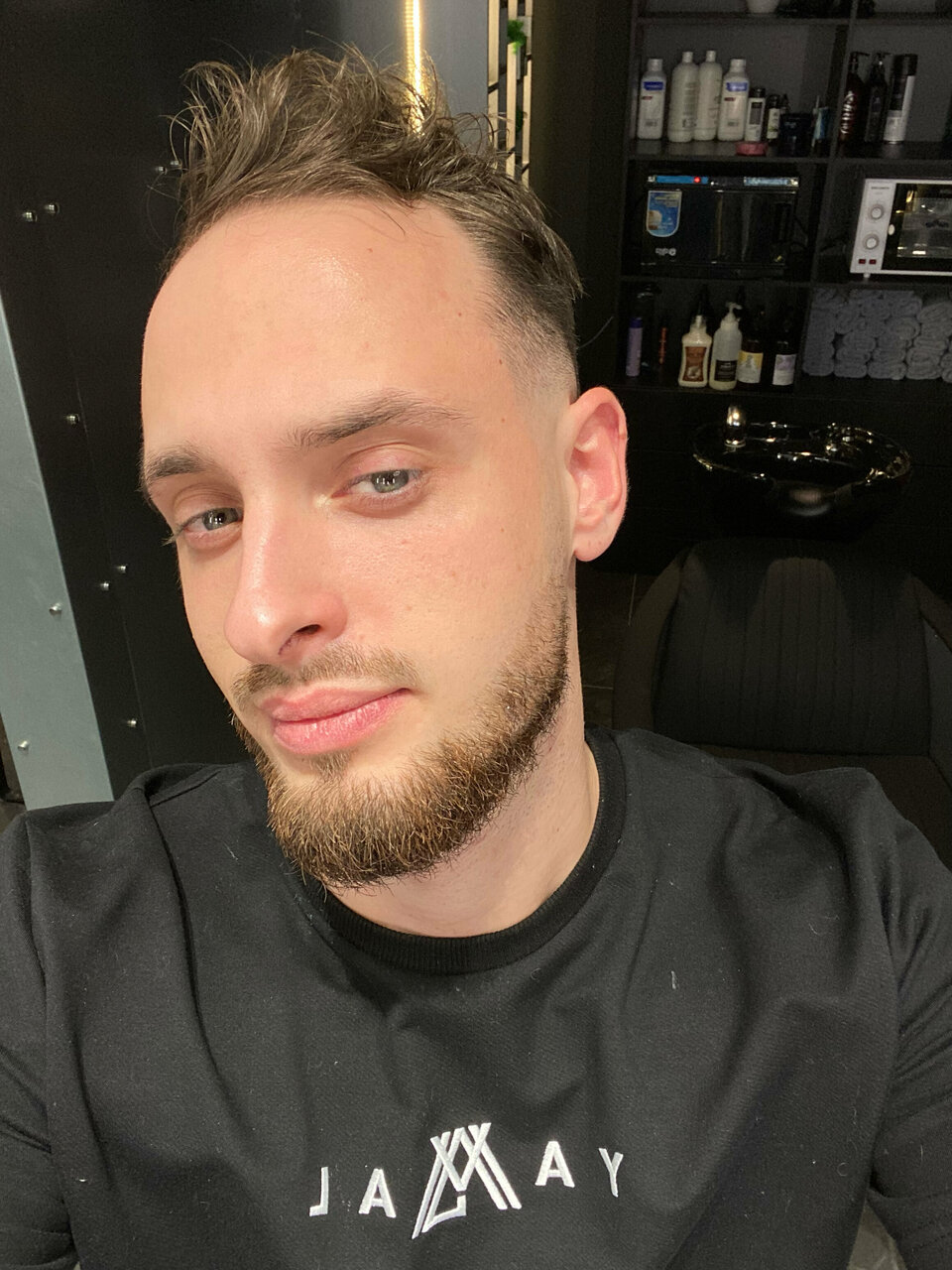Увидел по соседству барбершоп Заглянул и уже не могу остановиться . В Нутри шикарный дизайнерский ремонт Администратор встречает с улыбкой и встает со стула при встреча , мастера тоже топ вежливые приветливые , мне очень понравилось ! Предложат выпить кофе или кто что любит) ценник немного выше среднего, но сервис все компенсирует. Рекомендую Все звезды с неба ставлю вам