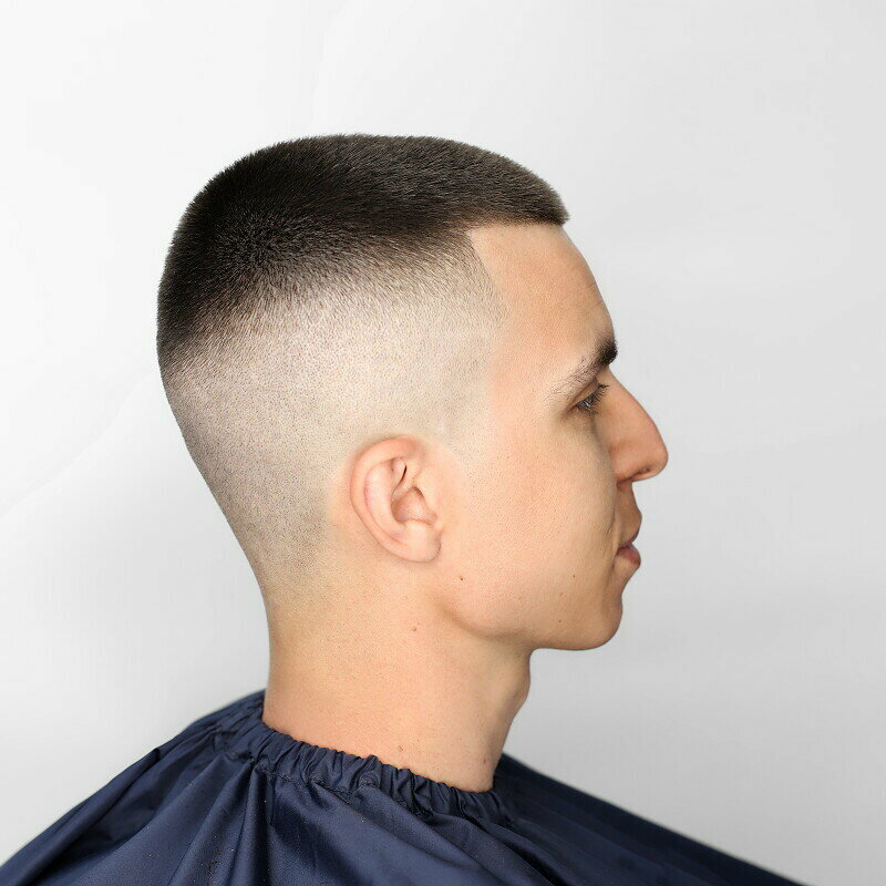 Стрижка с максимально короткой равномерной длиной. Выполняется машинкой.