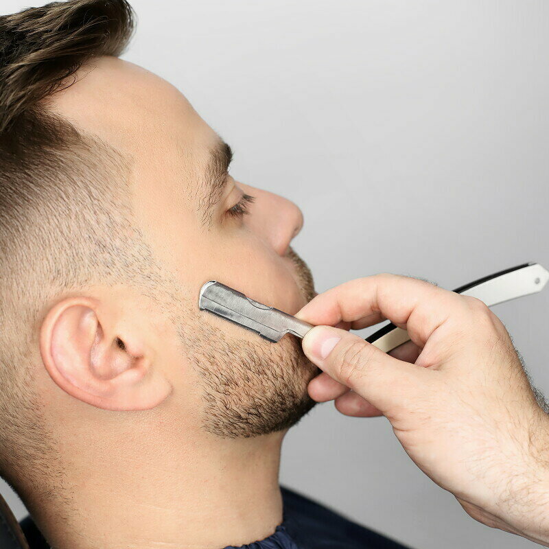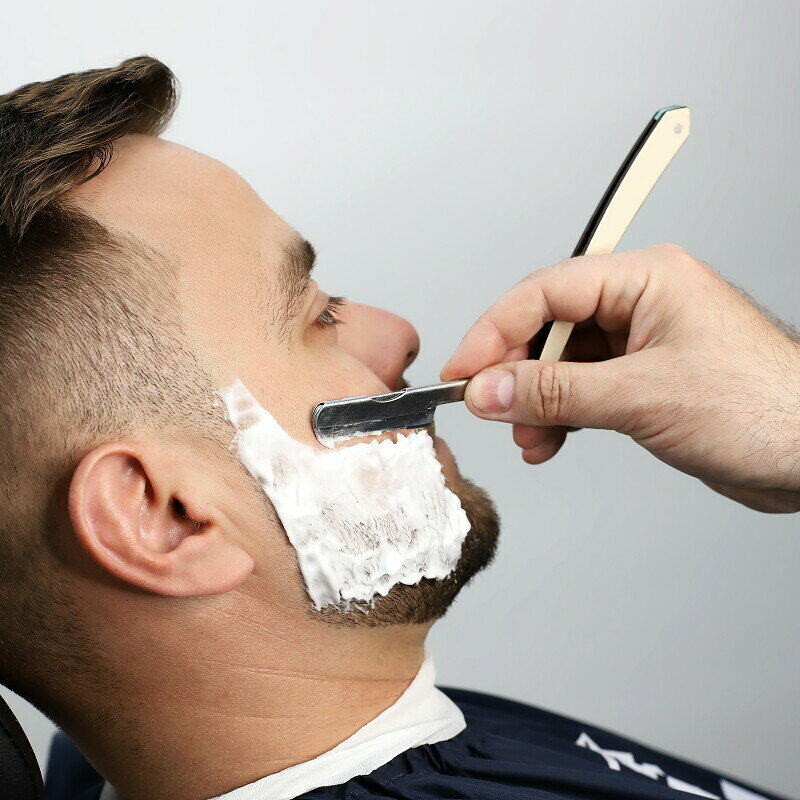 Бритьё с использованием опасной бритвы или шейвера.