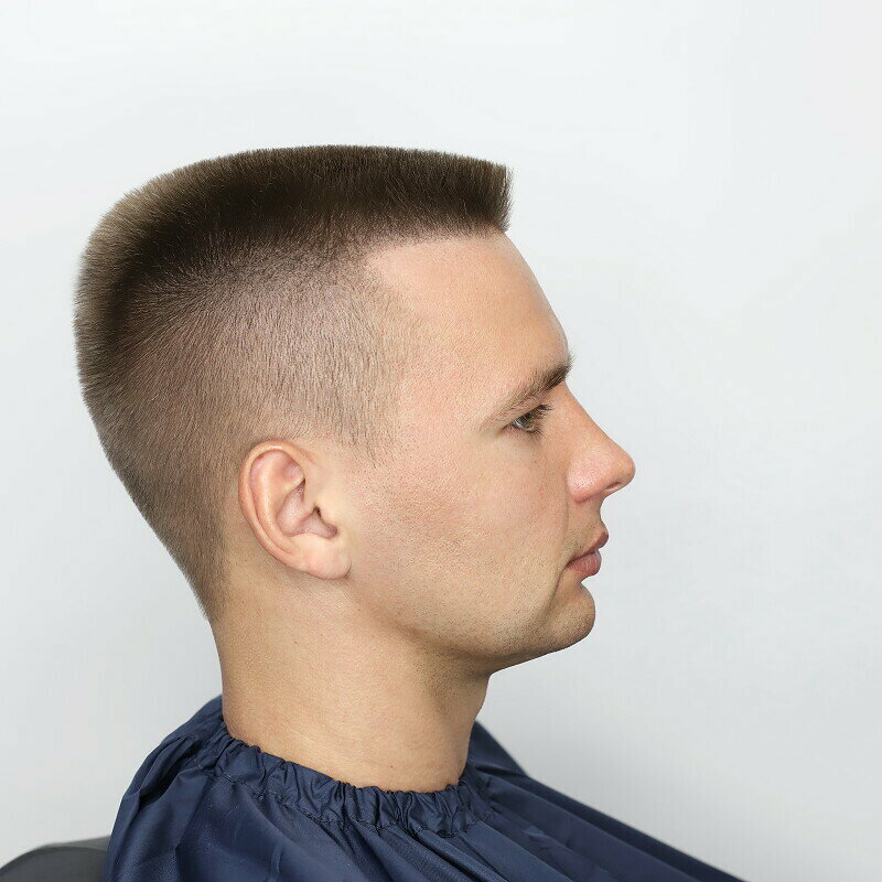 Ультракороткая стрижка с вариативной длиной в теменной зоне. Выполняется машинкой.