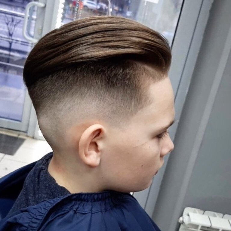 Классическая форма стрижки, свободная умеренная длина волос на висках и затылке. Выполняется ножницами и машинкой.