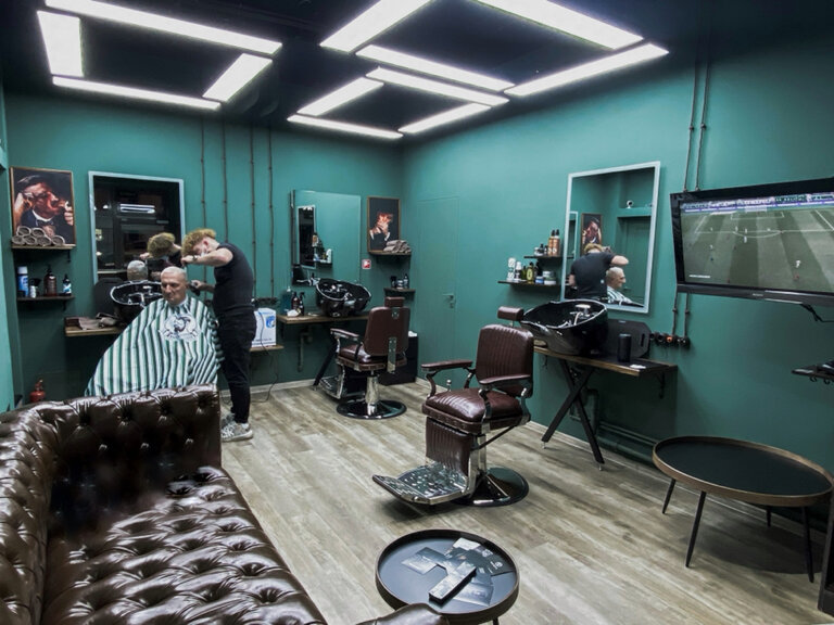 Отличный барбершоп с приятной обстановкой , телевизор перед клиентом , виски по желанию , мастера на высшем уровне , приятная беседа + отличная стрижка = отличное настроение !!!