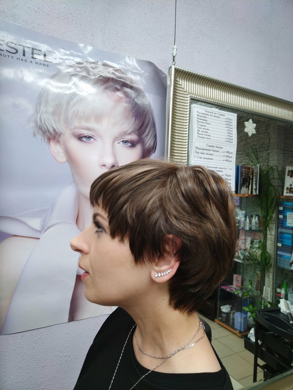 - Высокое качество услуг (стрижка, маникюр, брови)