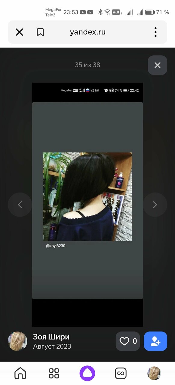 Поход в парикмахерскую был не запланирован, хотя волосы давно просили привести их в порядок. К счастью, магазин оказался рядом с салоном. Прошла мимо, что то заставило вернуться! И.. Не пожалела ни секунды! Просто показала фото стрижки, Зоя сказала, — без проблем!! Результат — полный восторг!! Приходите- не пожалеете!