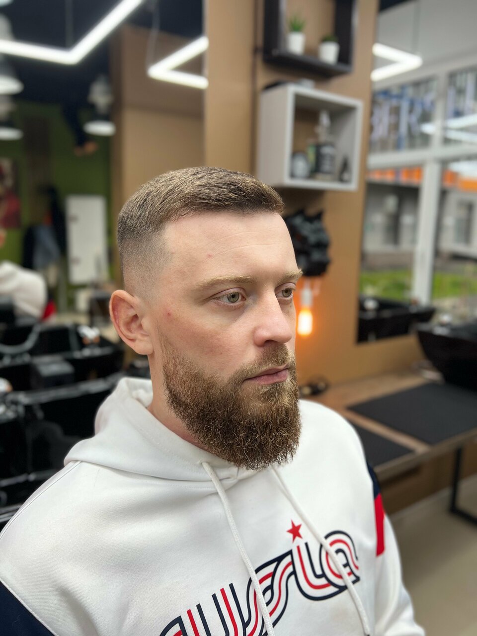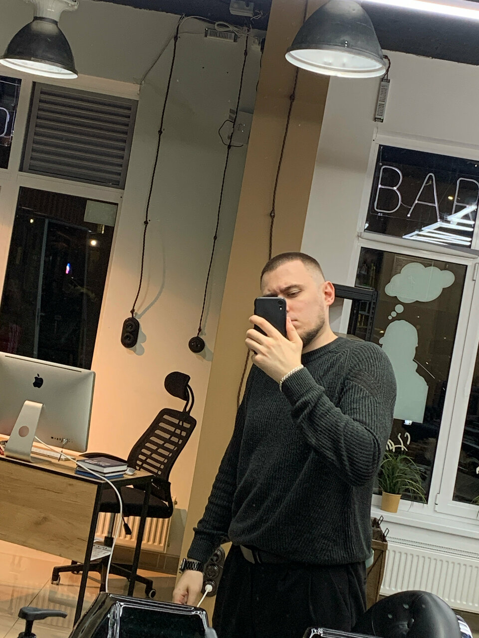 Был в барбершопе у мастера Александра — топ! ✂️ Чётко, стильно и без лишних слов. В салоне уютно, есть Psка, по цене за стрижку ниже рынка пока что. Атмосфера мужская, всё по кайфу. Респект мастеру!