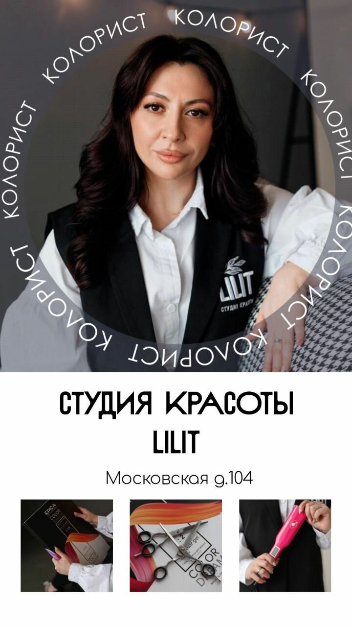 О этот рай . Когда женщина начинает седеть, начинается паника и конечно же поиски мастера. Соцсетях многие мастера индустрии красоты добавляются в друзья, а когда они тебе нужны, начинается. Мы так не красим, у нас все забито и т.д. Студию Лилит мне посоветовали случайные знакомые. Я очень стеснялась идти именно в салон, так как раньше я не посещала парикмахеров от слова совсем. Но все прошло гладко, меня встретила прекрасная девушка Лилит, выслушала, предложила сто можно сделать. И я стала постоянным клиентом, мы с ней каждый раз делаем что то новенькое, и результат всегда устраивает). Очень тяжело найти профессиональных мастеров на постоянной основе. Мне повезло. Про обстановку молчу, очень уютная и красивая. Но самое главное, прихлдя туда ты расслабляешься, успокаиваешься). Очень советую.