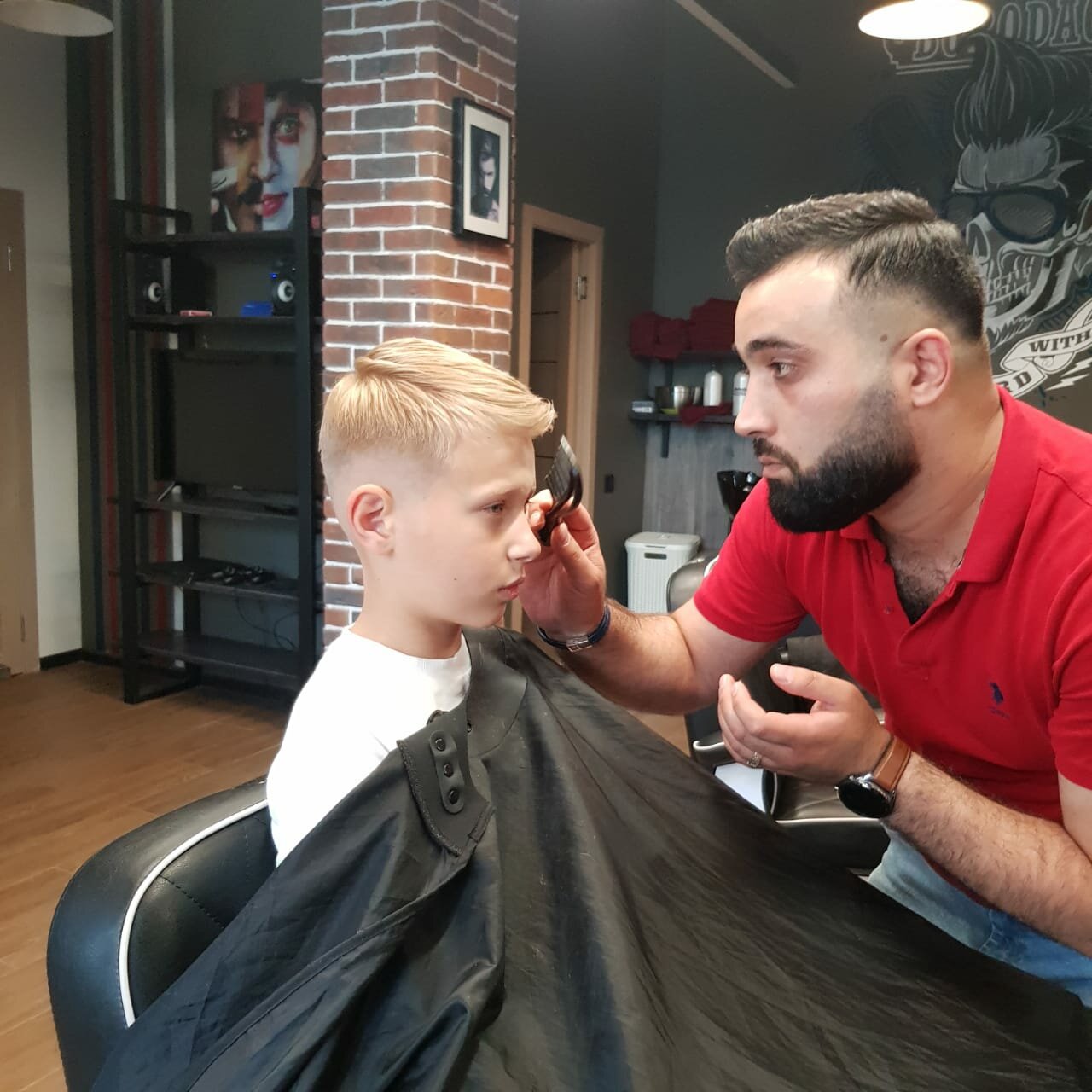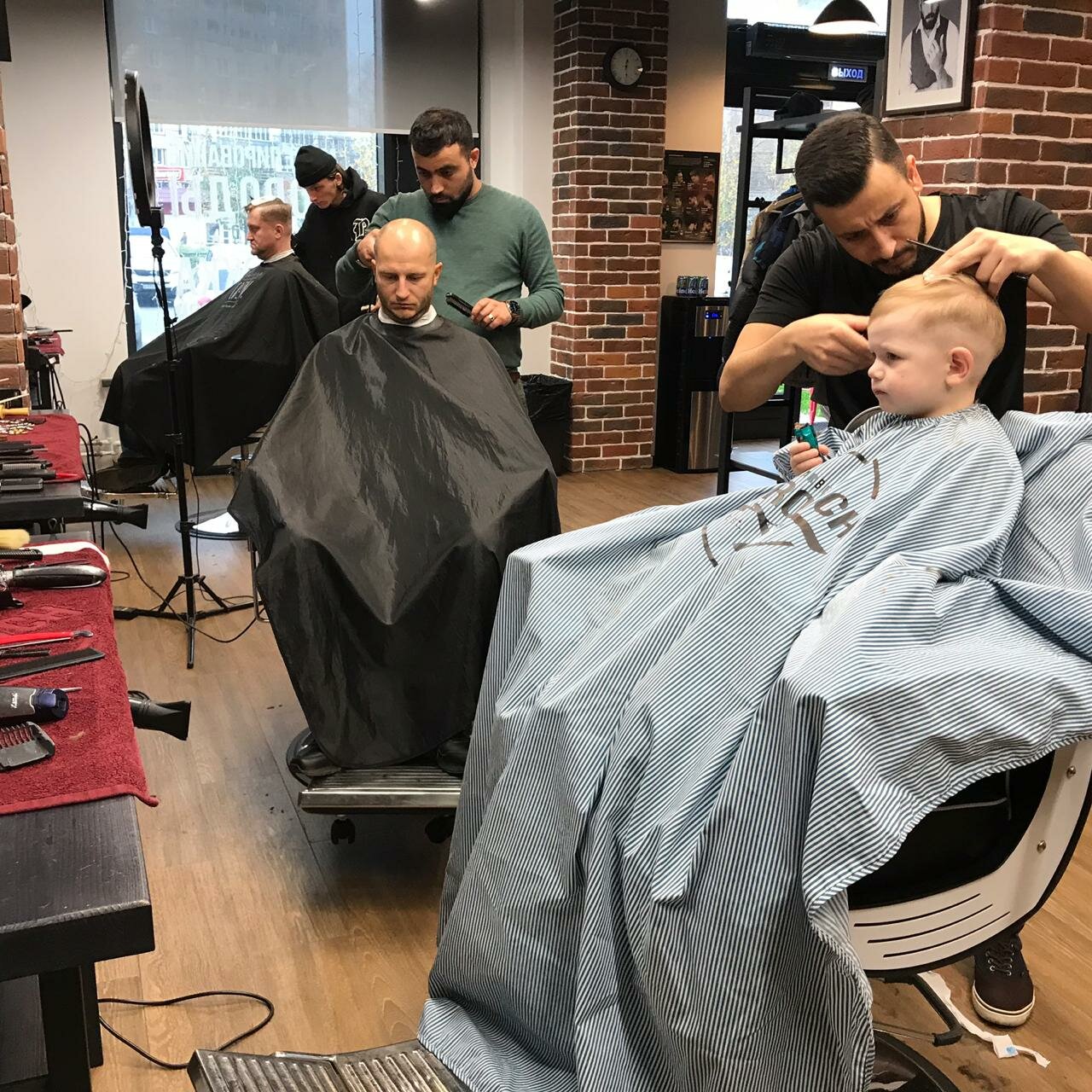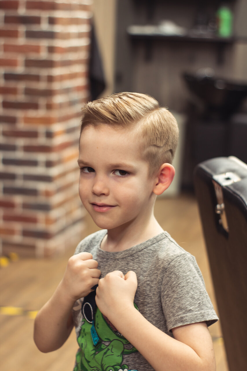 Стрижка как у папы — легко! Ухоженность важна в любом возрасте, позвольте сыну с ранних лет почувствовать себя настоящим мужчиной, окунувшись в атмосферу барбершопа. Процедура стрижки для детей от 4 до 12 лет включает в себя мытье головы, стрижку с и