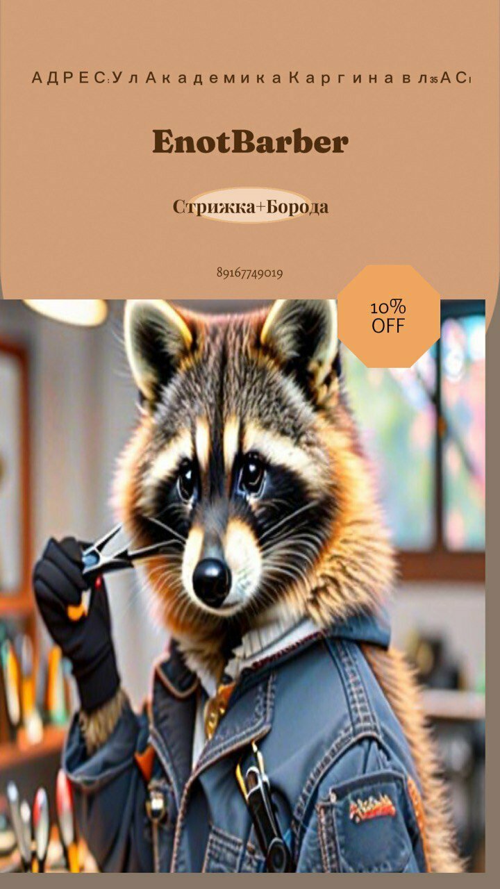 - Сайт: https://enotbarber.clients.site/#extras