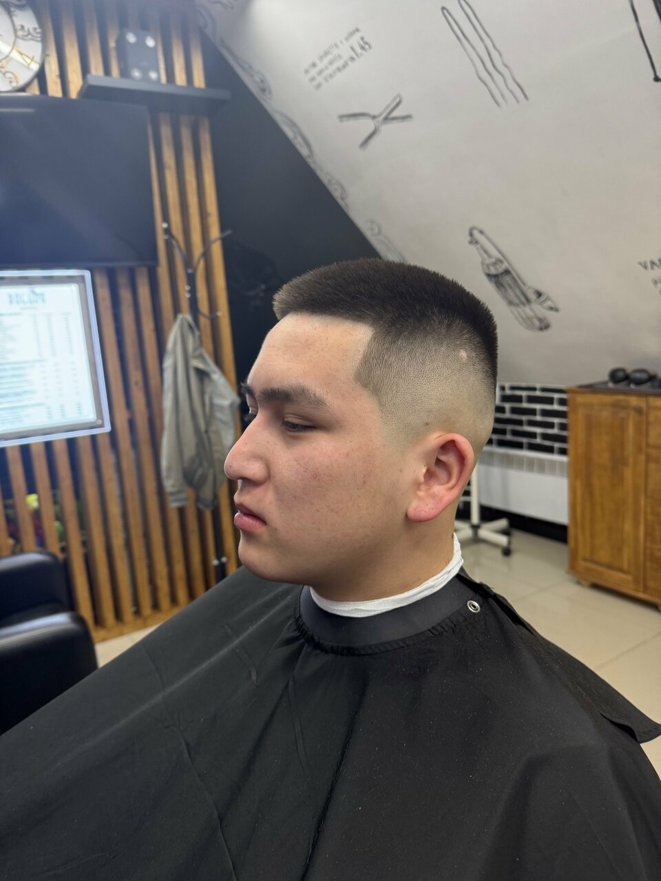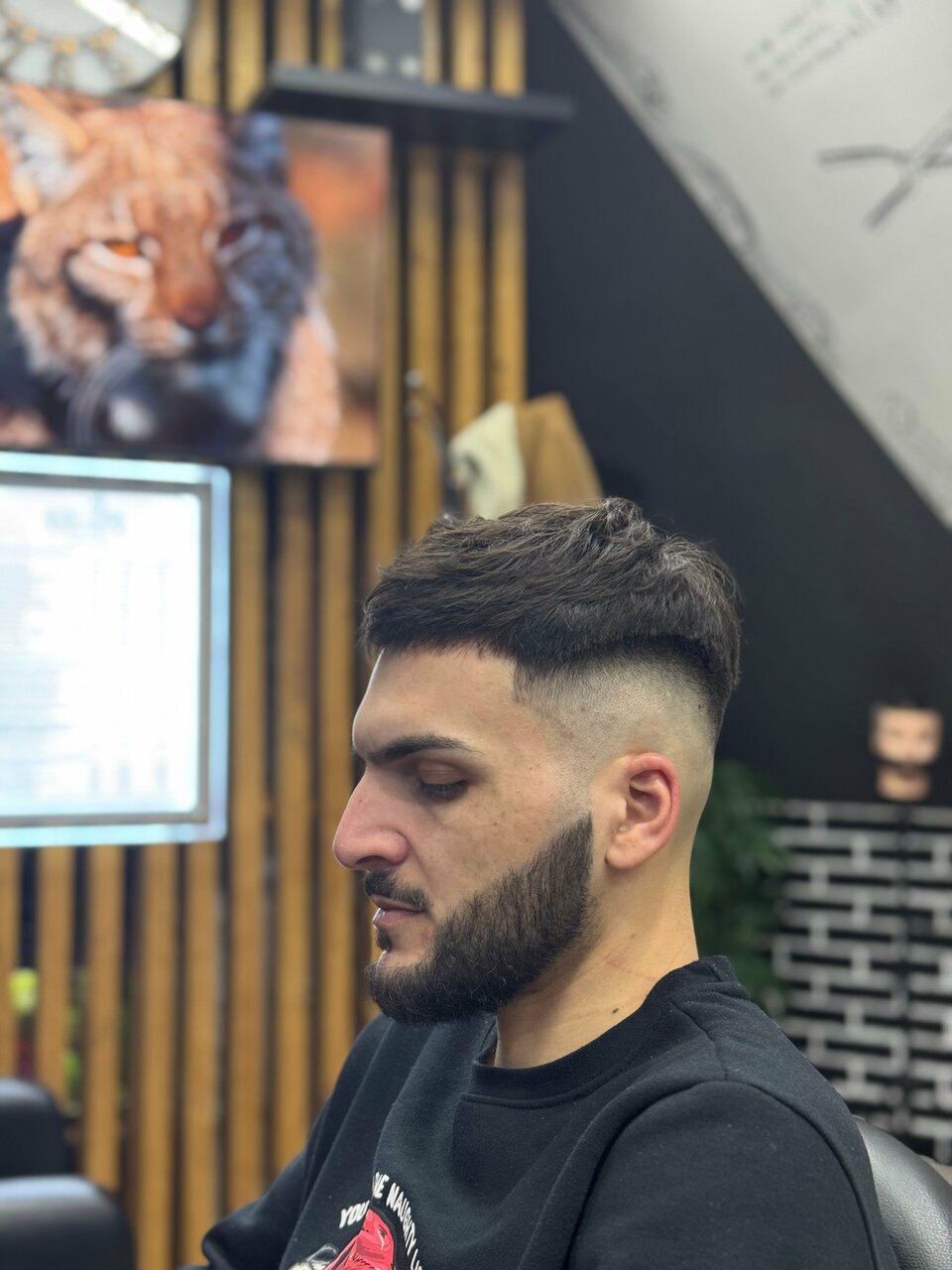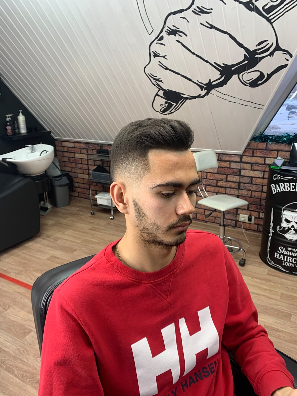 Ученик/подросток запорол бороду, пришлось сбривать в ноль. Возился при этом два часа. Мастер опытный максимально постарался исправить ситуацию со стрижкой, которая тоже была на грани.
