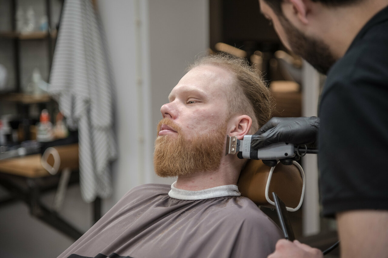 Стрижка бороды у старшего барбера