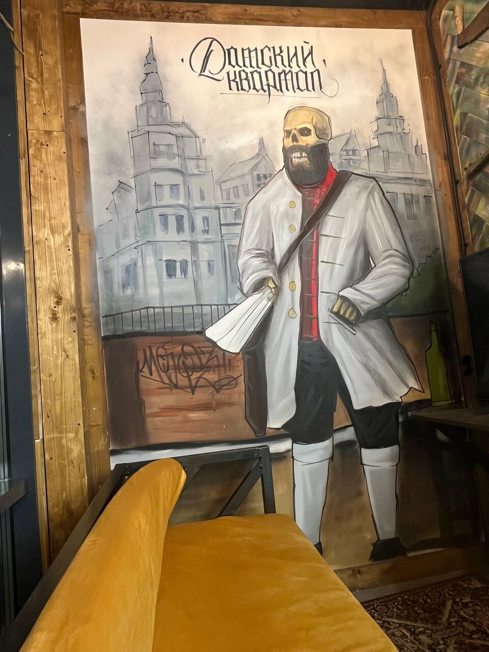 - Приятный, стильный, просторный интерьер (интересный дизайн, граффити)