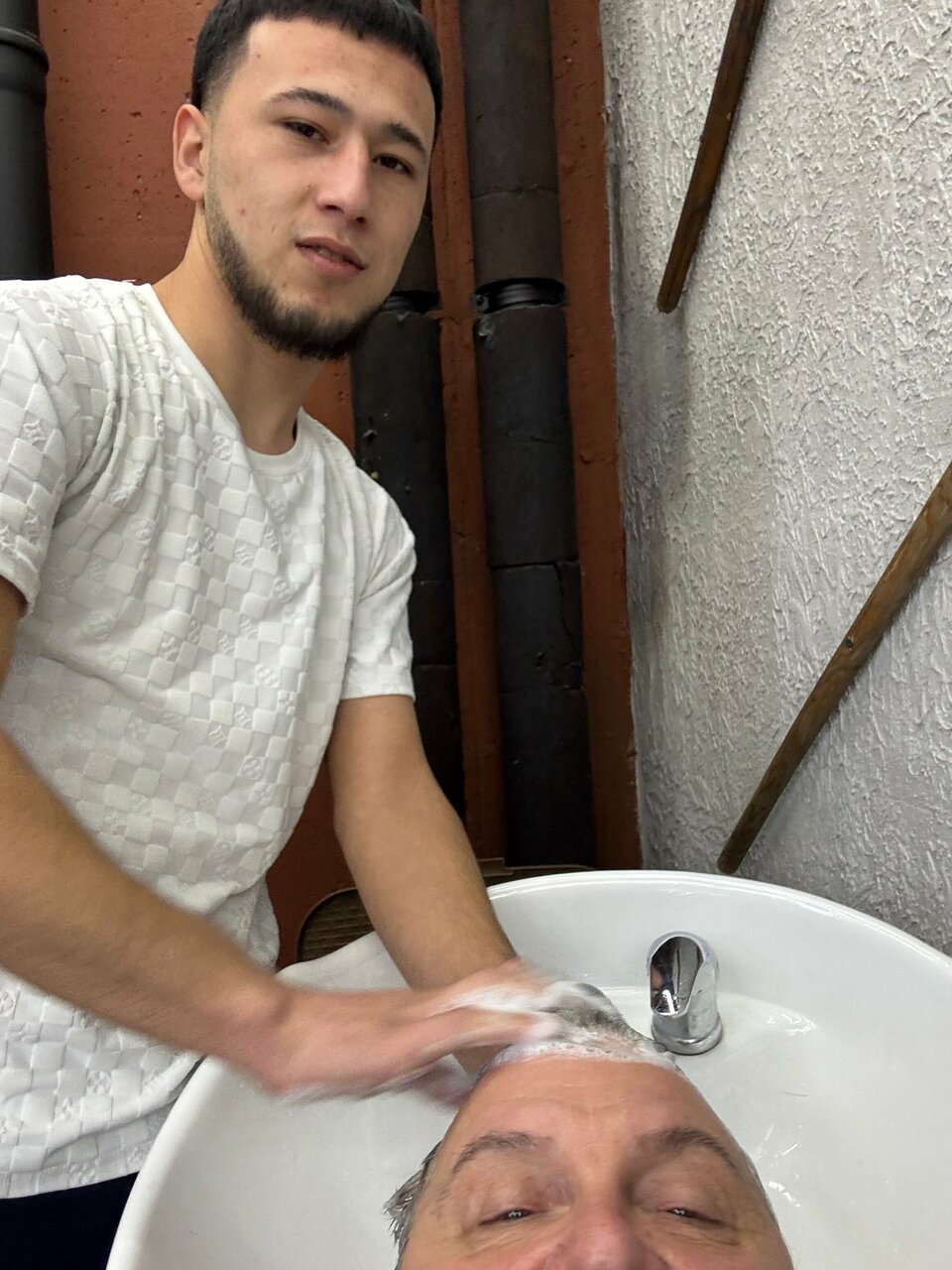 Мытьё головы шампунем личного бренда 'Чёрная Кость',стрижка машинкой под одну насадку