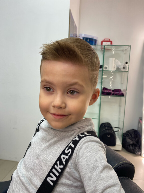 Услуга предоставляемая специально для мальчиков, включает в себя консультацию по выбору прически, мытье головы, стрижку с использованием профессиональных инструментов и укладку.