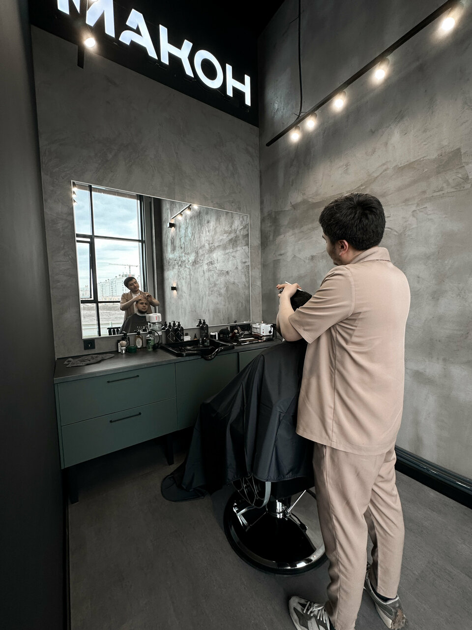 Новый барбер шоп от Макон. Стильный, красивый и современный ремонт. Лучшие мастера своего дела. Не первый год стрижемся. Однозначно рекомендую к посещению.