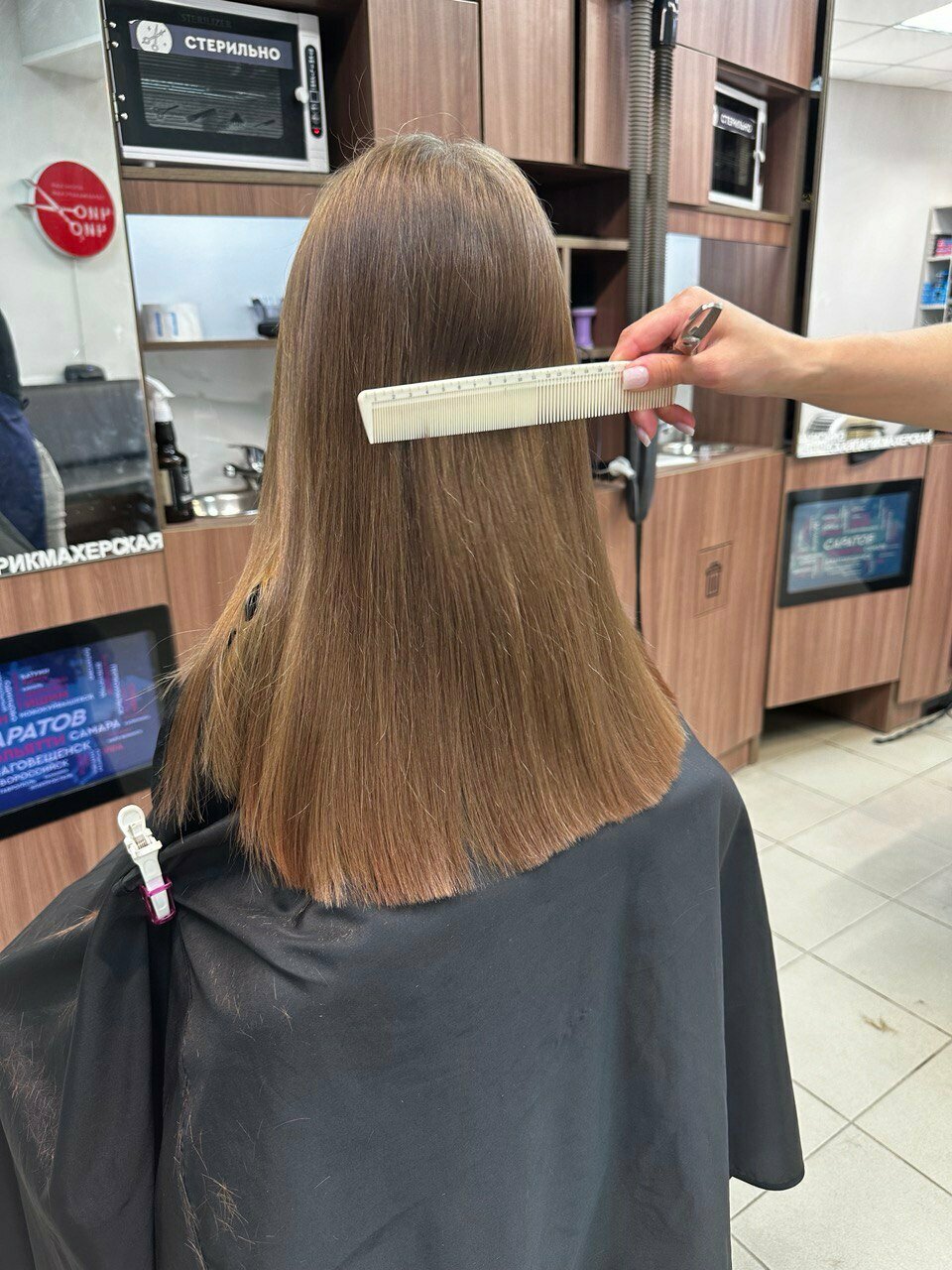 Спасибо мастеру Валерии! Очень кропотливо, но при этом быстро подравняла мне волосы. Салон выбирала в округе по отзывам и не прогадала — приятный интерьер, смешные цены, доброжелательный персонал.