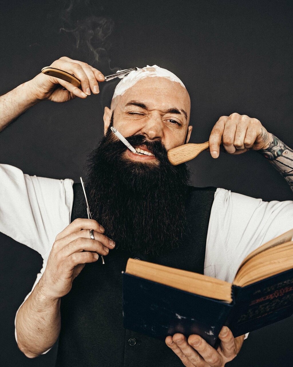 Петр — прекрасный барбер и интересный собеседник. Лысый) Но умеющий обращаться с ножницами и расческой)) А если обратите внимание на столик, сделанный его руками, то поймёте, что он еще и творческая личность. Всегда рад посещению его барбершопа.