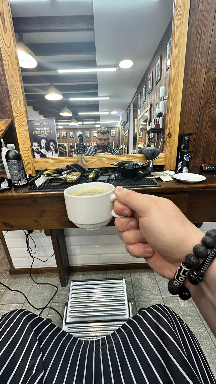 Сегодня посетил ваш Барбер шоп, мастер Николай. Понравился стиль мастера в исполнении стрижки. Результатом доволен. Вежливая администратор приготовила очень вкусный кофе.
