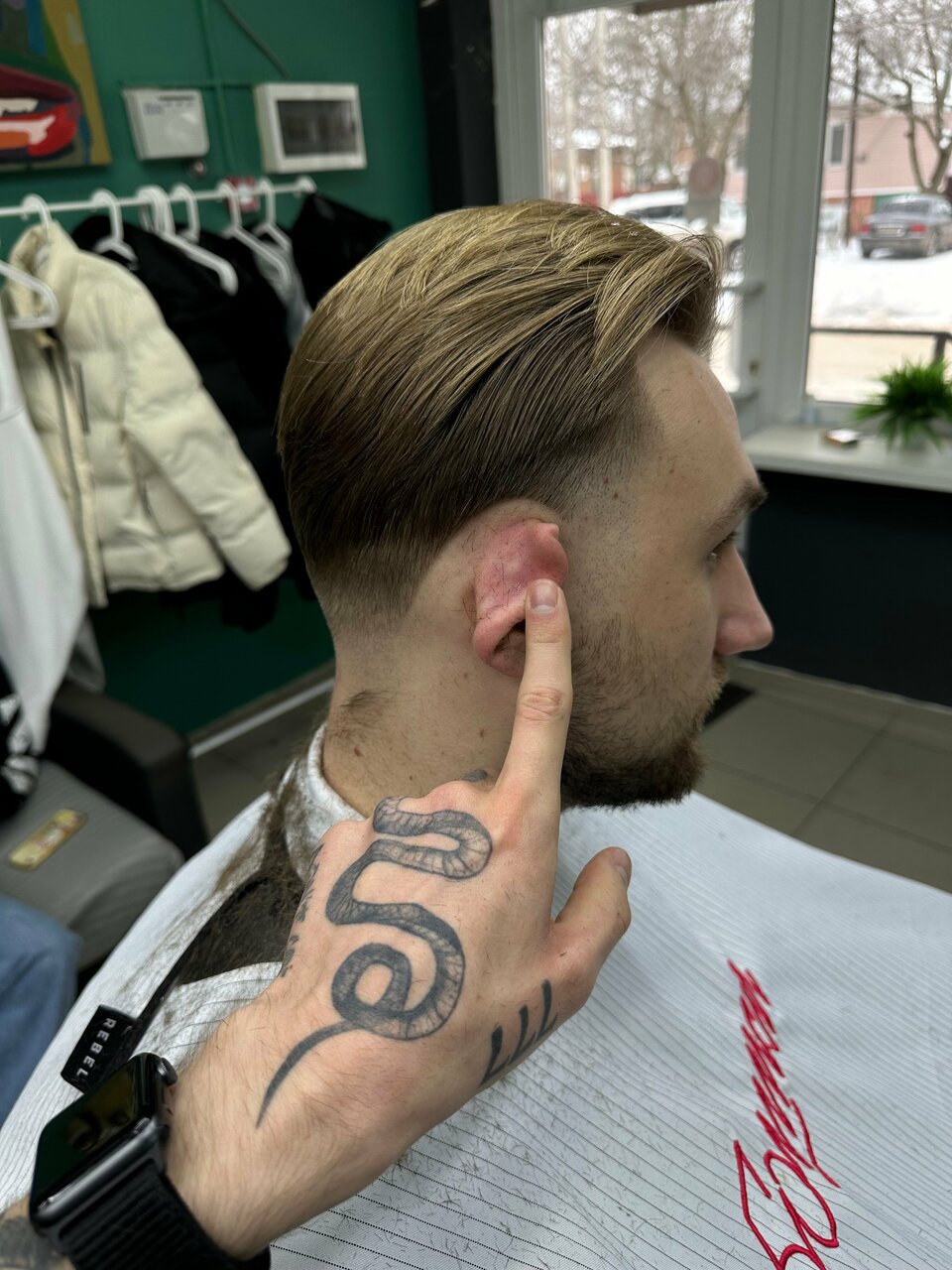 Оно 🔥 Почти все барбершопы в городе — парикмахерские с чеком 1000₽+, где спрашивают про прямые / косые виски и стригут посредственно. Здесь, на удивление, построили хорошо, без лишних вопросов. Даже на 3й день прическа смотрится нормально. Барбер был Игорь. Месту лайк 👍