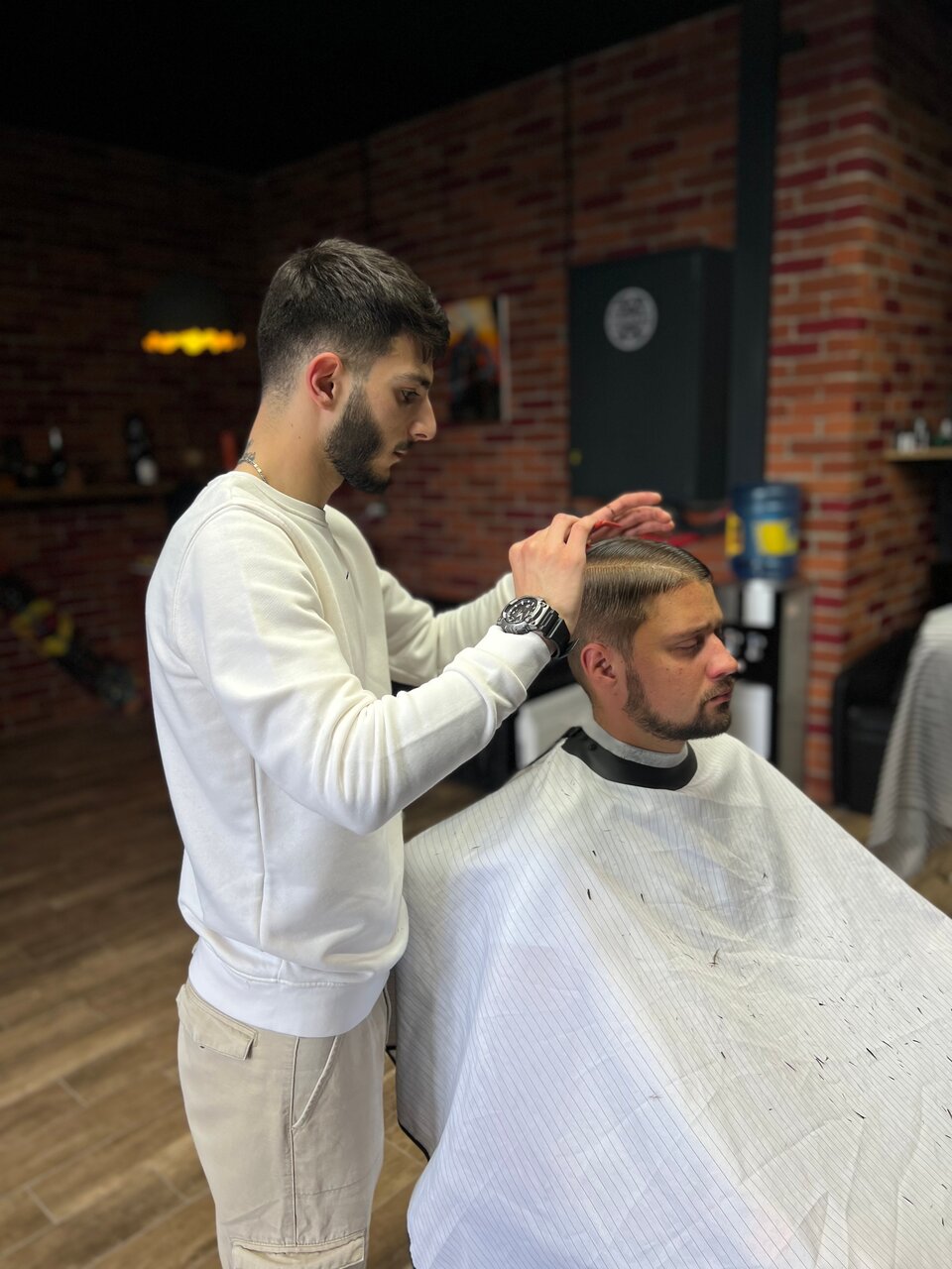 пришли со своим мастер Вардан очень красиво его подстриг и создал нереальный вайб!! очень советую место тоже хорошее есть плойка