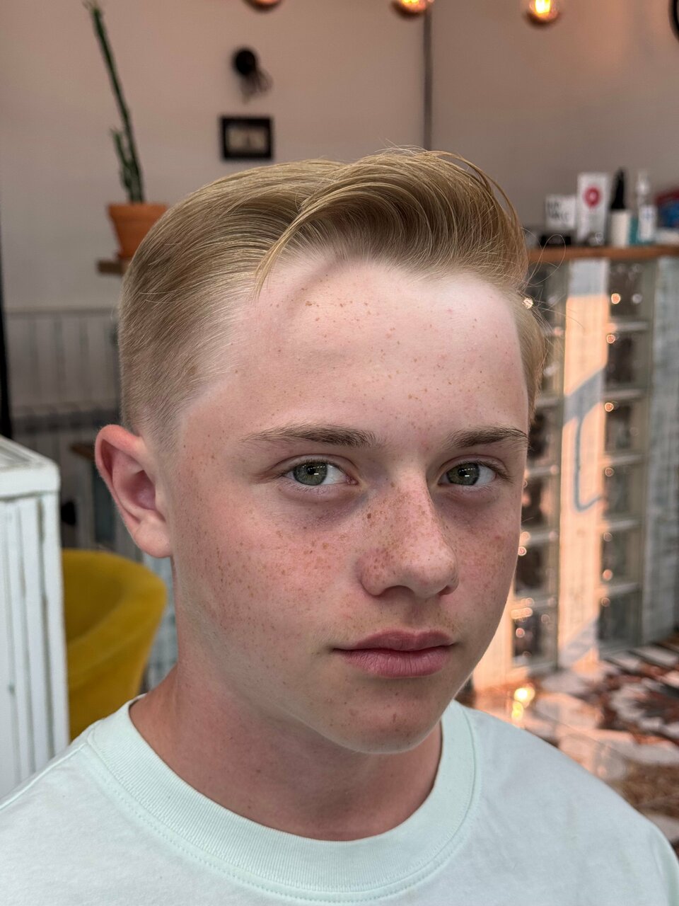 Пригласили сына на бесплатную стрижку. Девушка приветливая , вежливая стригла под присмотром мастера. Выбрила молнию)). Сын остался доволен)).