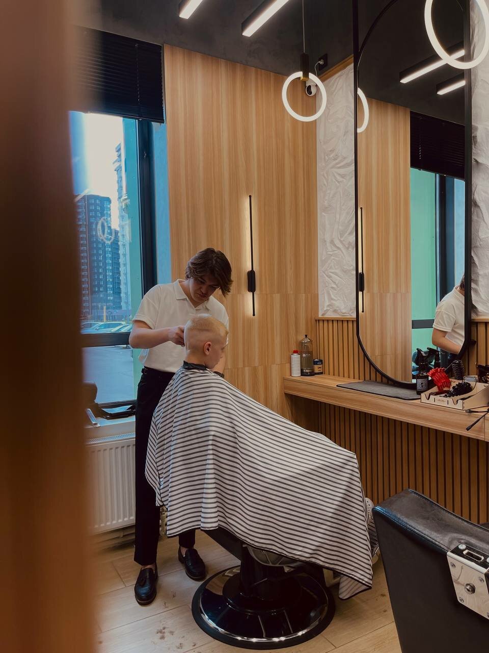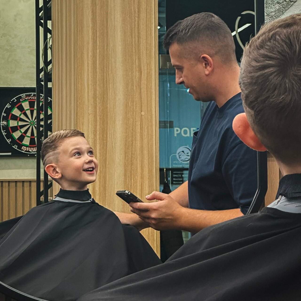 На стрижке у мастера Алекса был сын (4года). Я объяснила, какой результат хотим, и мастер сделал все так, как мы и хотели). Очень уютная атмомфера, а для детей есть игрушки. Приветливый и отзывчивые персонал. Еще хотелось бы добавить оперативность, стрижка прошла очень быстро, что очень важно для ребенка! Вернемся еще)
