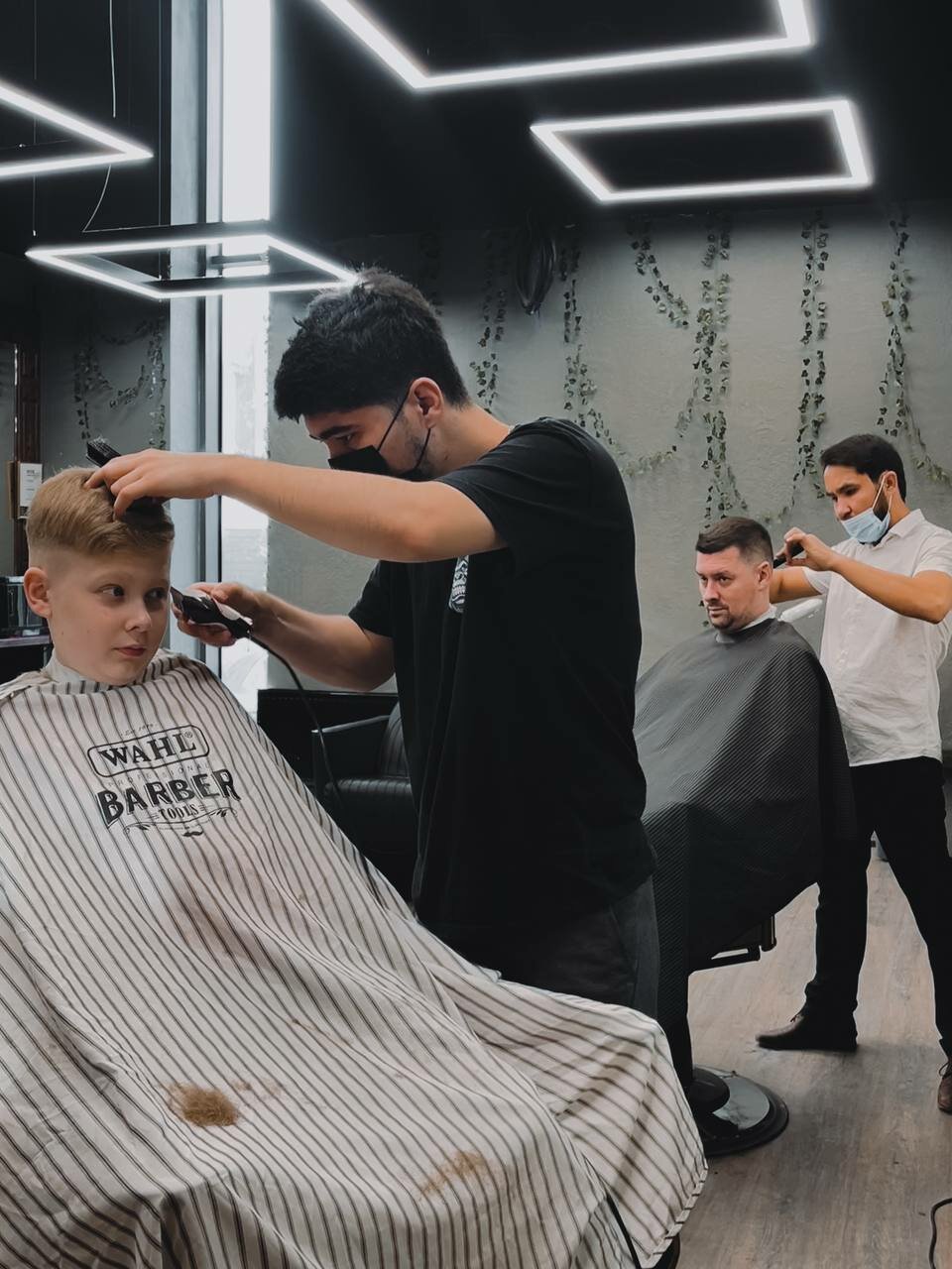- Быстрое и аккуратное обслуживание; Приятные цены; Вежливый и приветливый персонал; Бесплатные напитки (виски с колой).; Стрижка без слез для ребенка