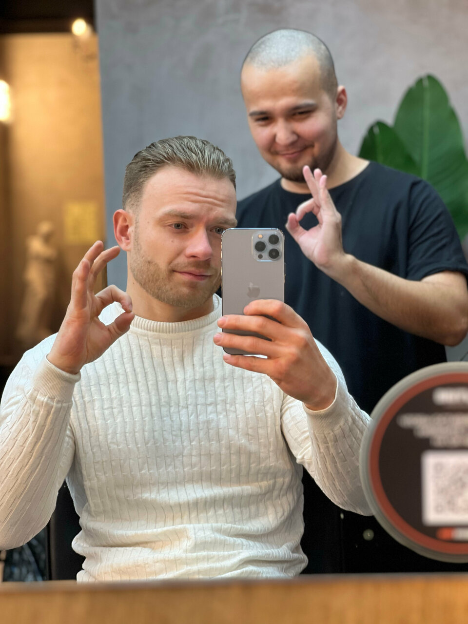 Очень приятное и атмосферное место! Вкусный кофе, приветливый персонал. Отдельно хочется выделить барбера Азиза. Помимо идеальной стрижки вы получите хорошее настроение и интересную беседу!