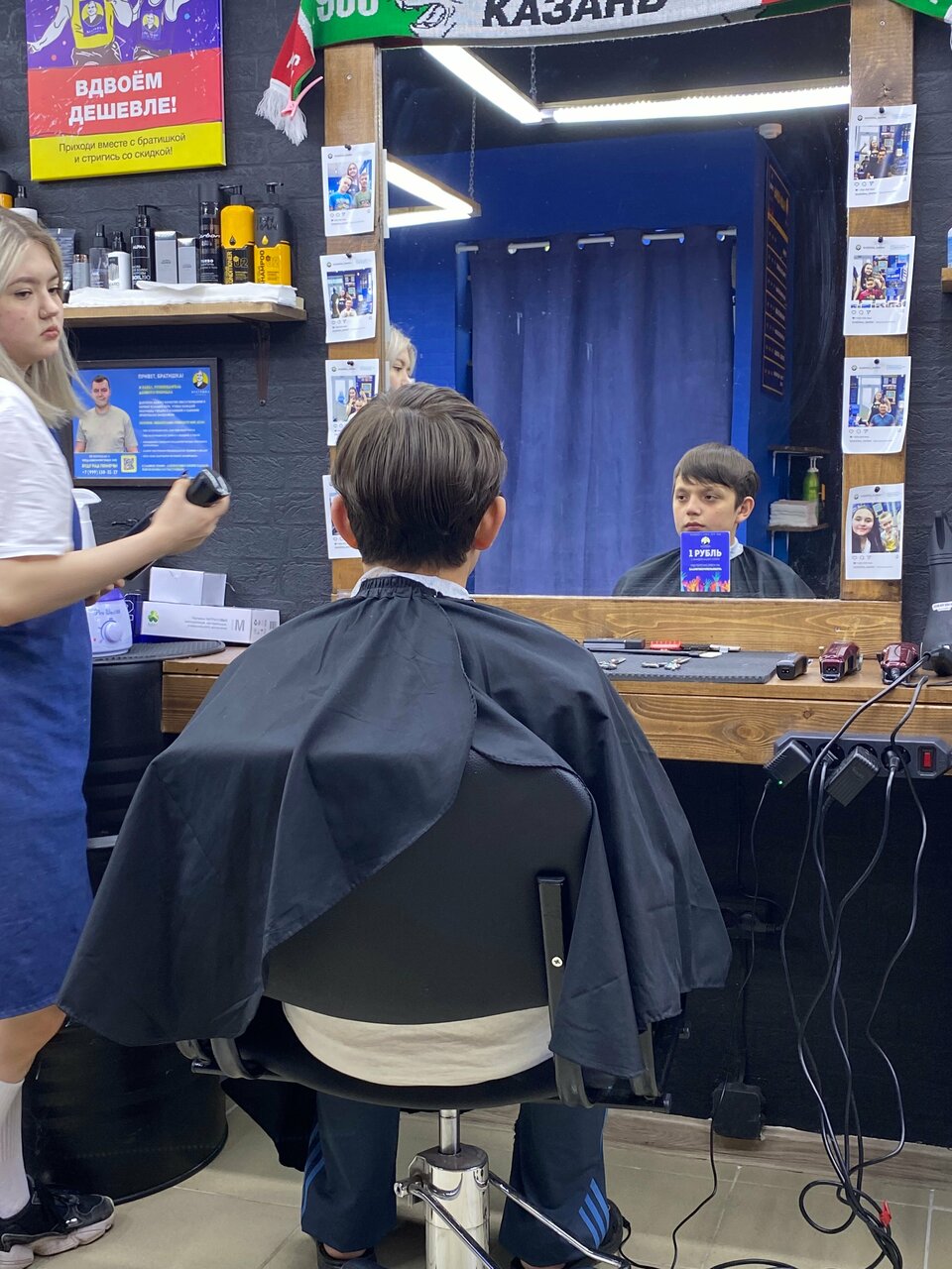 Первый раз конечно интересно, именно атмосфера и доп услуги… При этом мне не понравилось, как стригут ( оставили хохолок на темочке) и не цены 550 рублей за это.