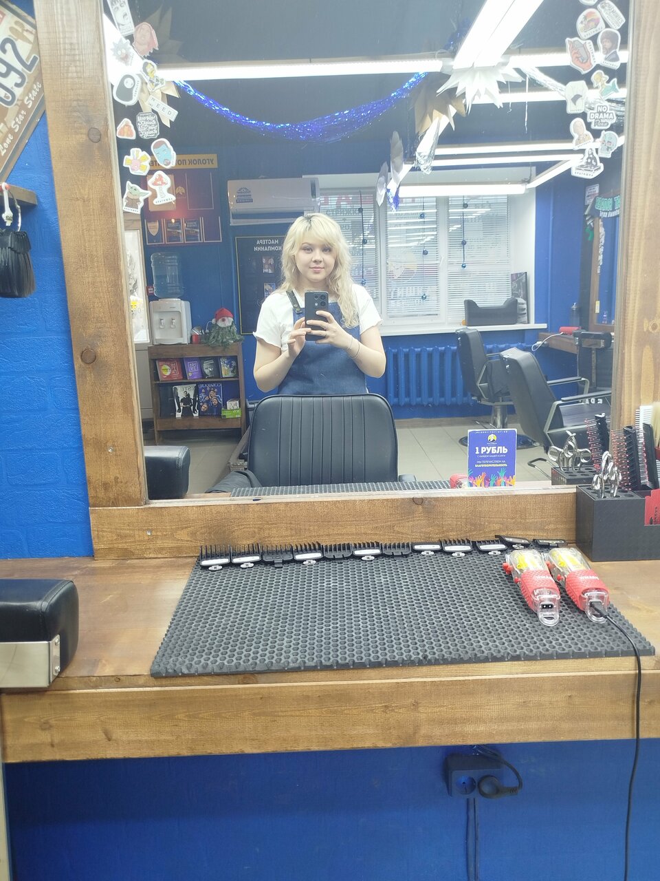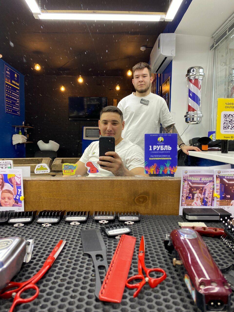 Уютная атмосфера, барберы работают хорошим инструментом. Спасибо Еве за отличную причёску