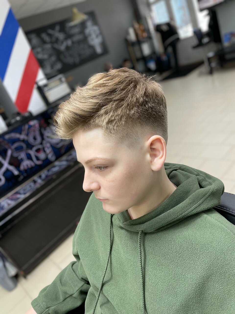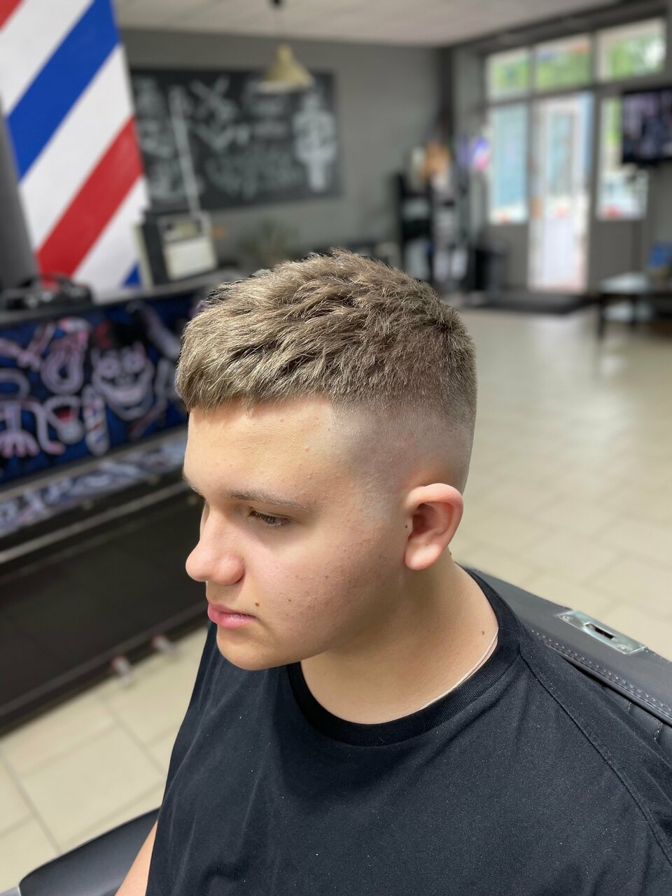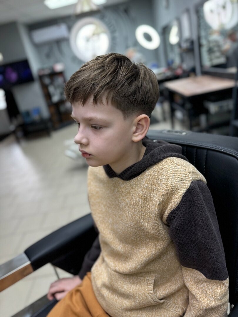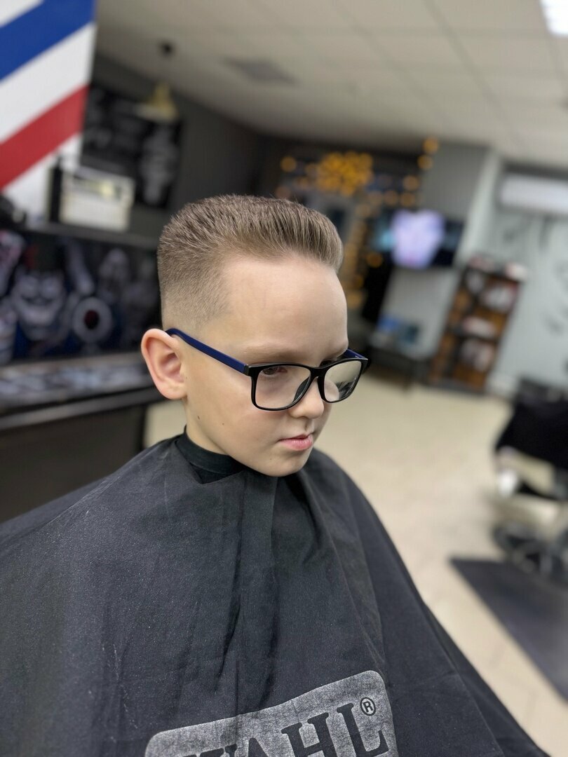 Детская стрижка от 10 до 17 лет.Классическая ,короткая детская стрижка, с мойкой головы (по желанию сопровождающих). Работа производится преимущественно ножницами и машинкой, с использованием шейвера. Детская стрижка от наших мастеров это классическ