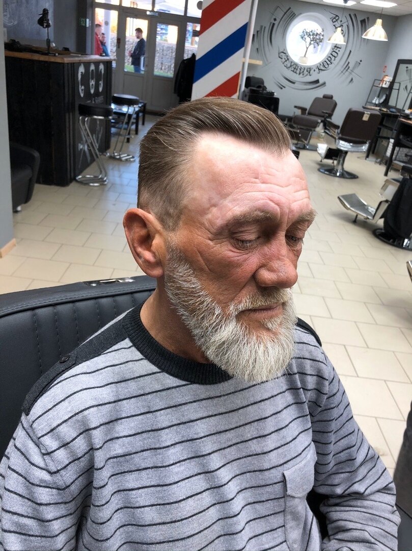 Классическая короткая стрижка с использованием машинки, ножниц и шейвера. Моделирование вашей бороды и усов при помощи триммера ,ножниц и шейвера. Выполнение окантовок и гармоничных переходов как на бороде так и на голове. Укладка после стрижки.