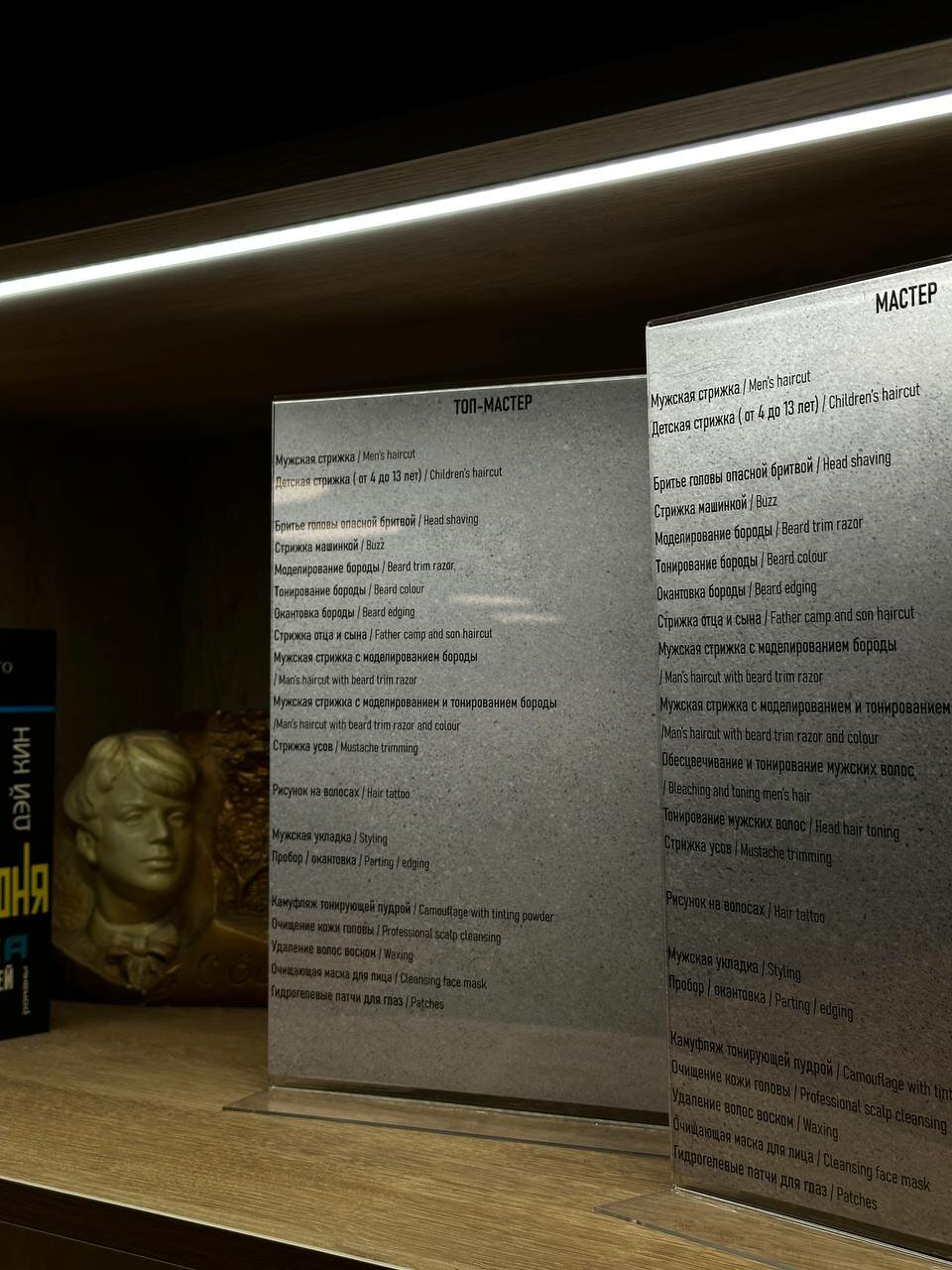 - Широкий спектр услуг (стрижки для мужчин и мальчиков, бриться, тонировка, массаж лица, ваксинг, очищающие маски для лица)