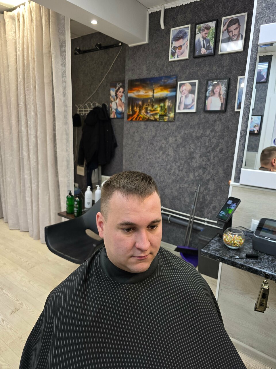 Вчера я посетил парикмахерскую и остался в полном восторге. Мастер работает сверх профессионально, и я чувствовал себя в надежных руках. Результат потрясающий, прическа вышла именно такой, как я и хотел. Кроме того, в парикмахерской очень уютная атмосфера, что делает процесс еще более приятным. Однозначно рекомендую эту парикмахерскую всем, кто ищет качественное обслуживание и отличный результат1