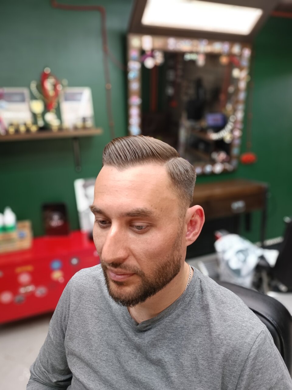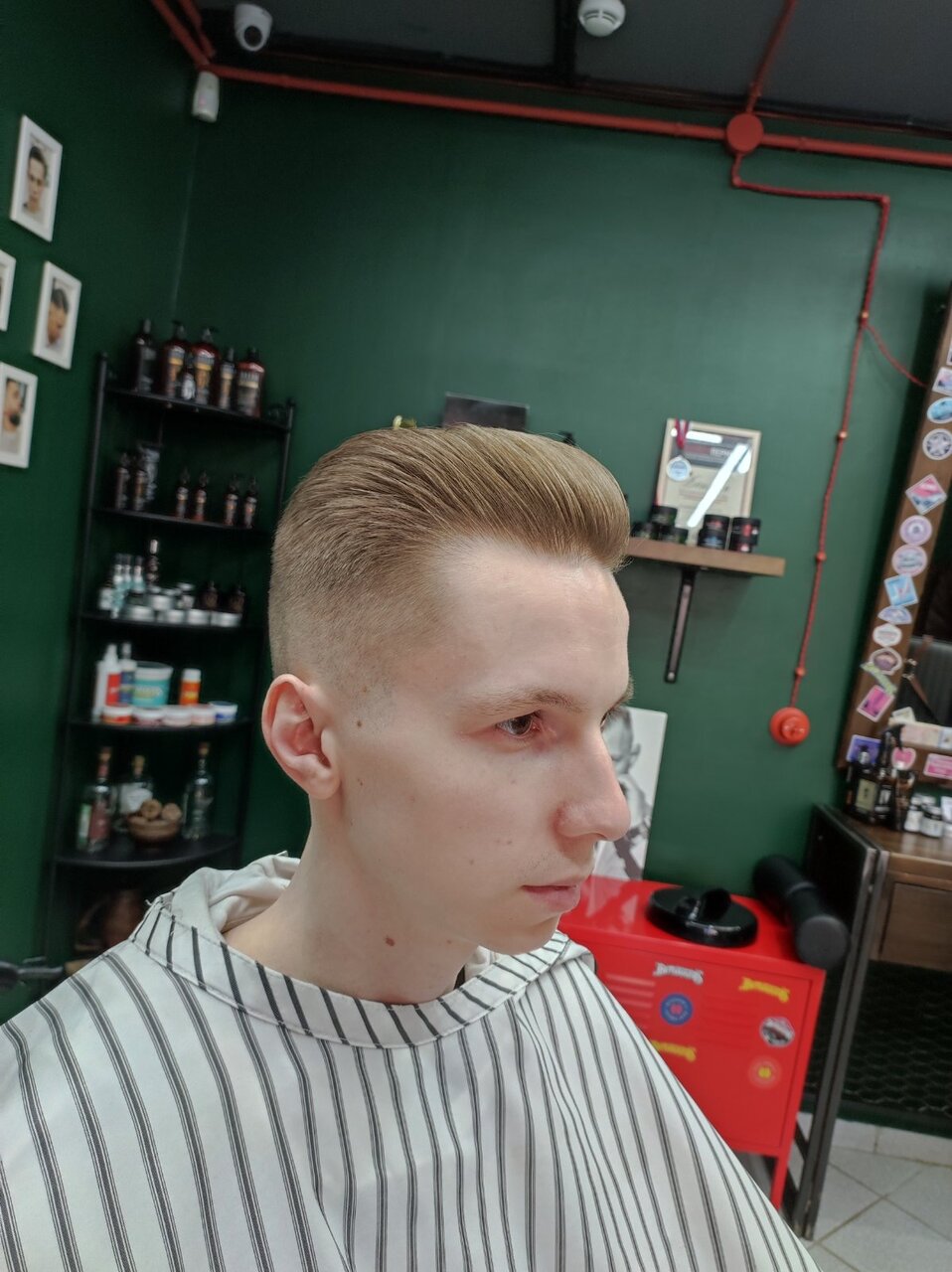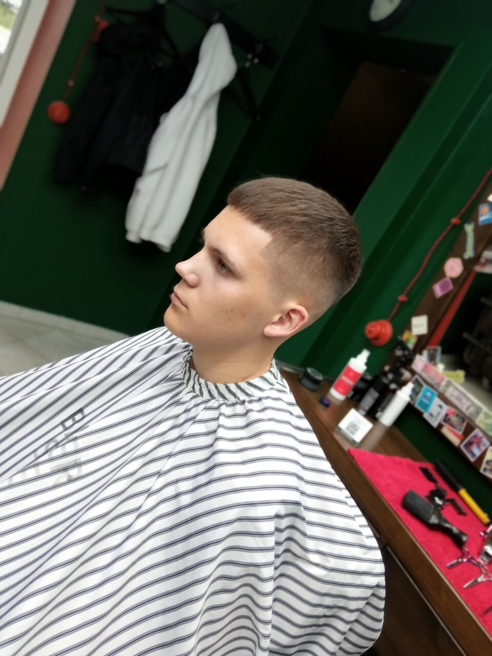 Неплохо все было, обслуживание, интерьер, профессионализм неплох, но не гуру…..в целом понравилось все, ещё пойду, барьеров поднатаскиыать, брить хорошо бреют бока и сзади, с верхом надо работать ещё.