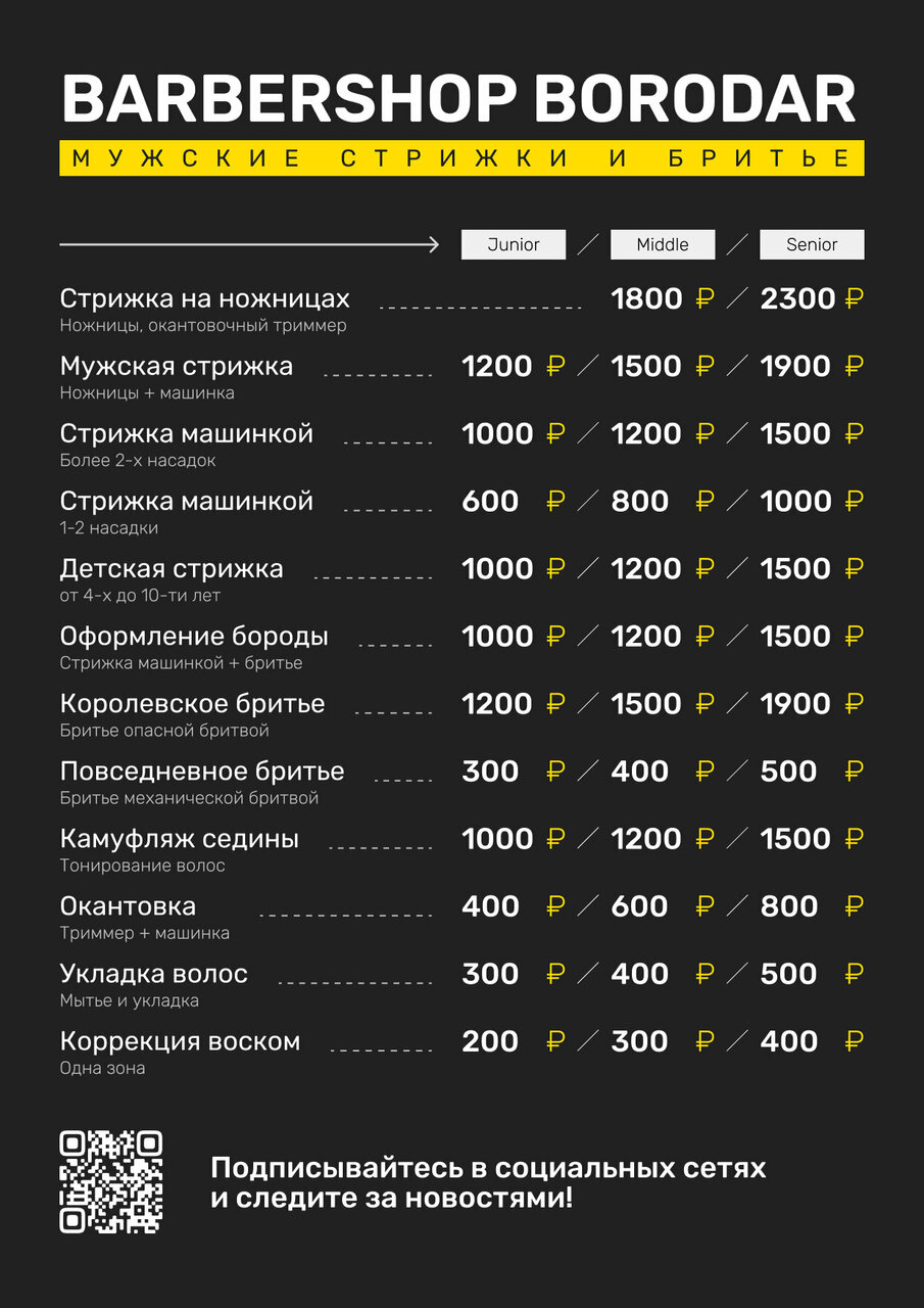 Скачать прайс-лист Borodar на ноябрь 2025 годаАдрес барбершопа Borodar на карте