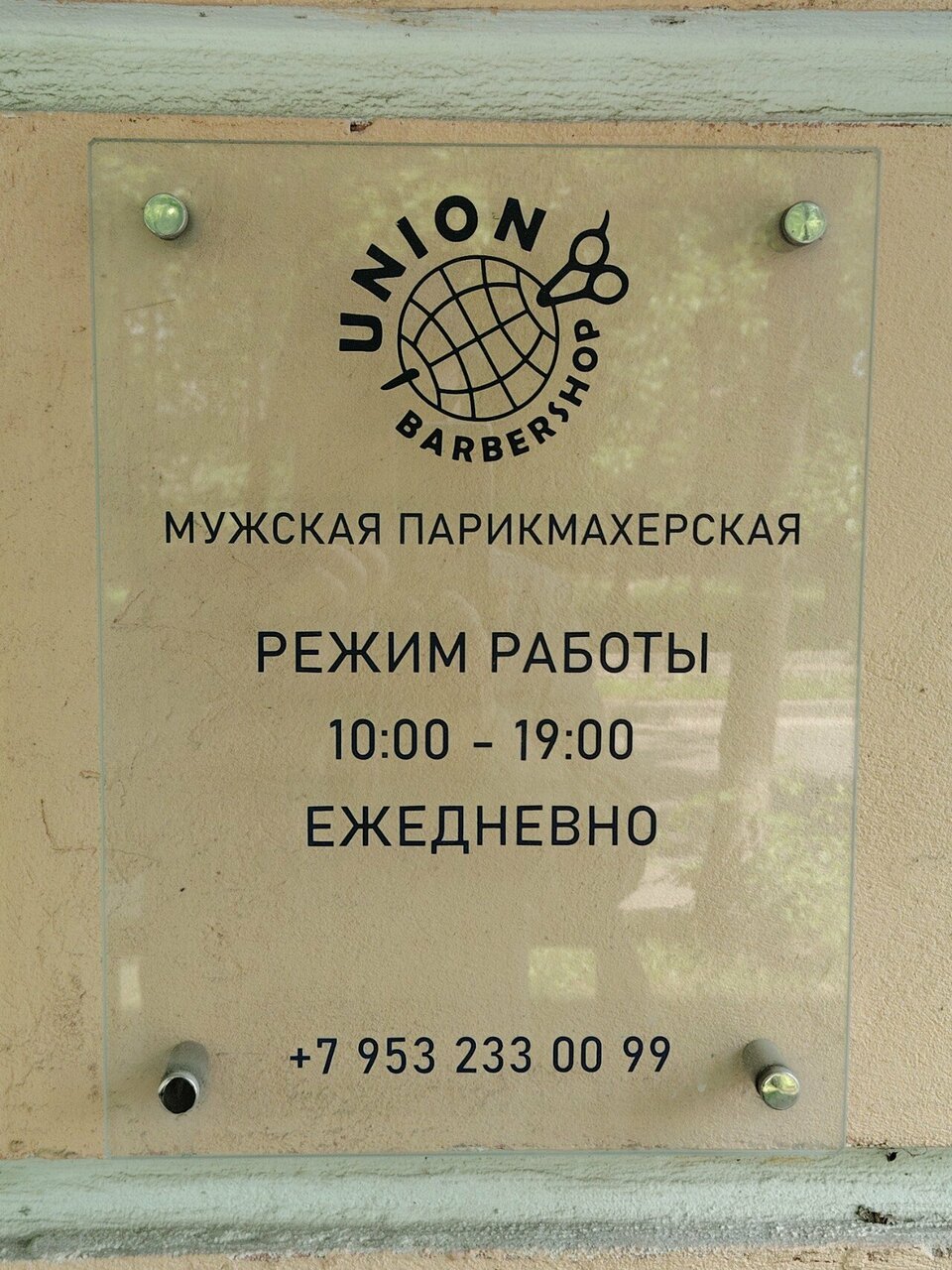 Барбершоп Union работает ежедневно с 10:00 до 20:00. Для связи и записи доступны телефоны: +7 (953) 233-00-99 и +7 (995) 240-13-40.