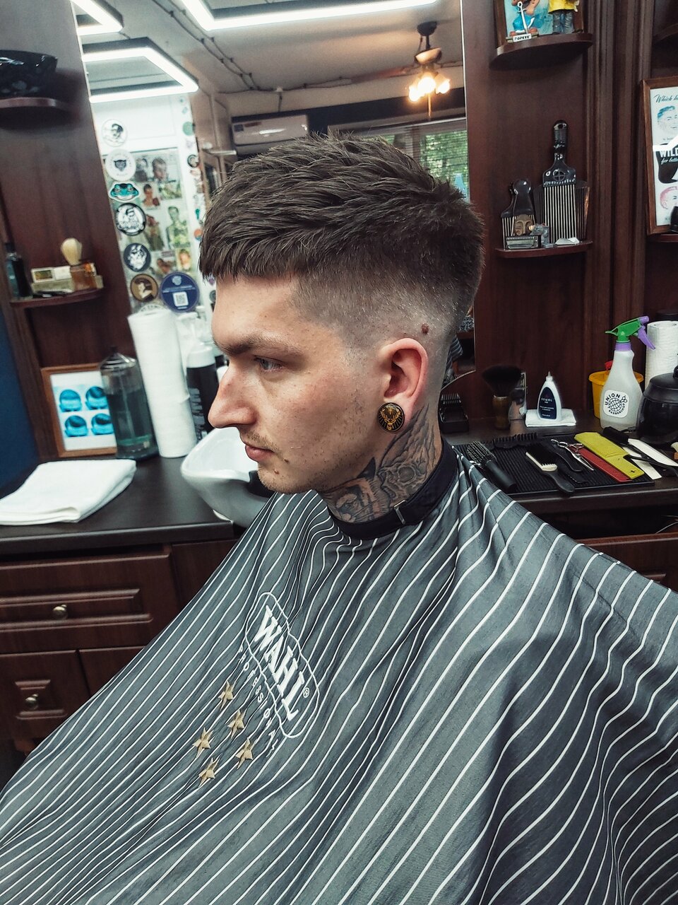 Суровое место для суровых мужиков 🙂 быстро стригут и бреют + стоимость меньше чем у других, записываться надо заранее , хотя я за день, парни всегда в работе :)в зале играет хорошая музыка 🙂