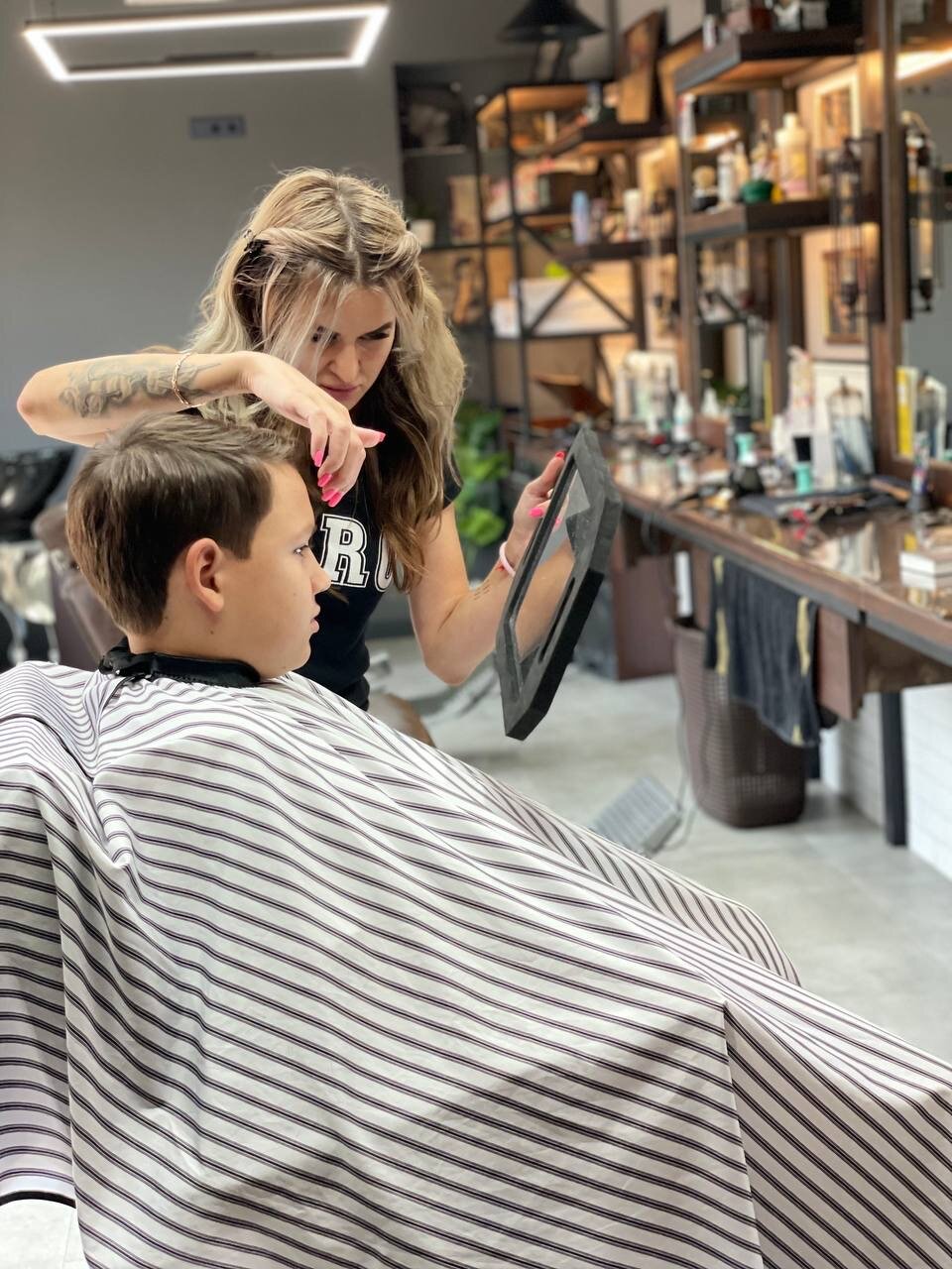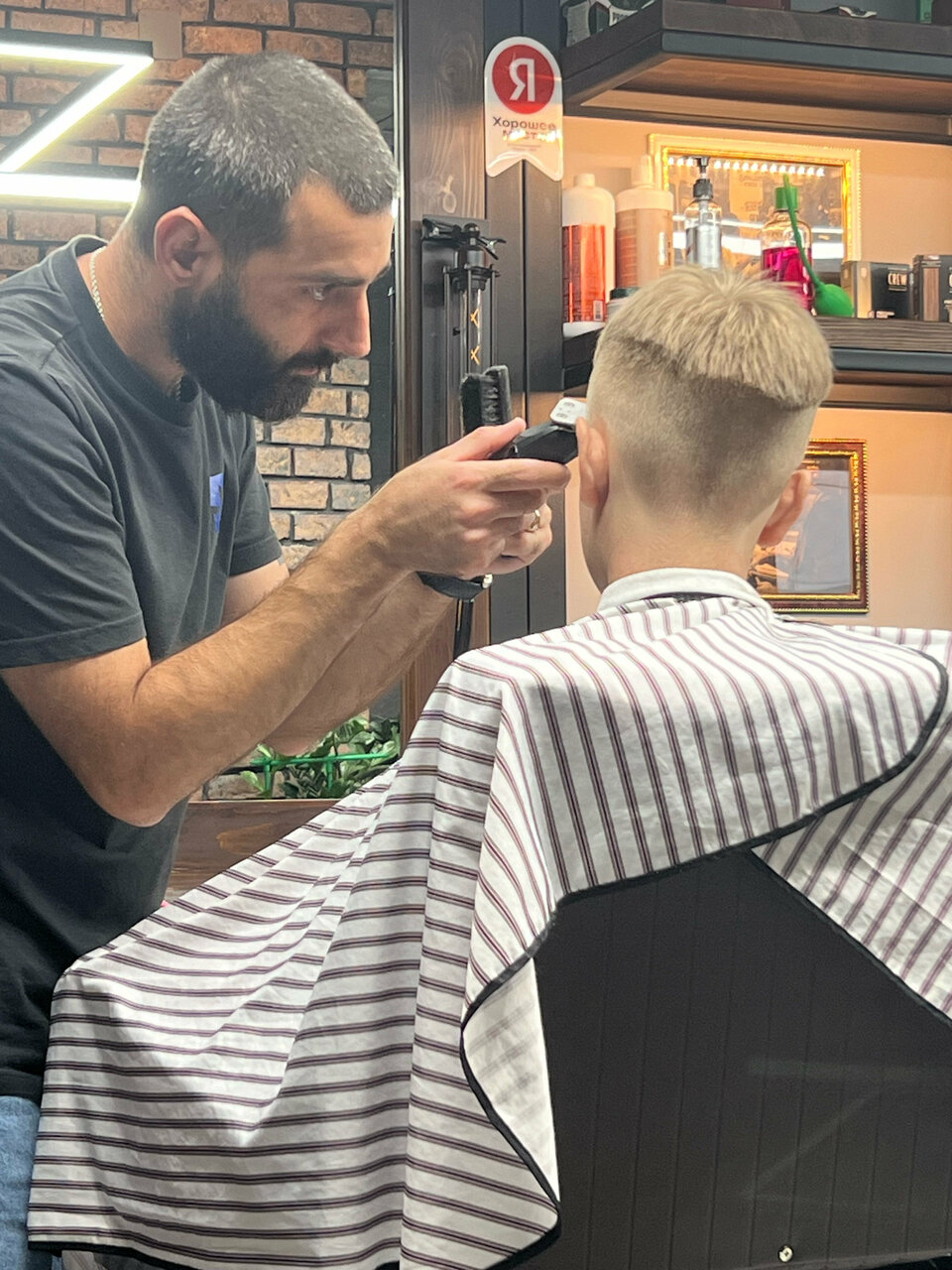 Атмосфера, интерьер 100%, и главное барберы-мастера своего дела. Барбер Алёна — это лучшая находка за последние несколько лет!!! Очень важно когда мастер слышит тебя и относится с перфекционизм к своему делу. Стрижка у мужа выглядит великолепно вплоть до следующего визита, а не как обычно на второй день после стрижки невозможно ничего сделать. Сына стрижёт барбер Ираклий, каждый раз они экспериментируют , ребёнок доволен, родители тем более.