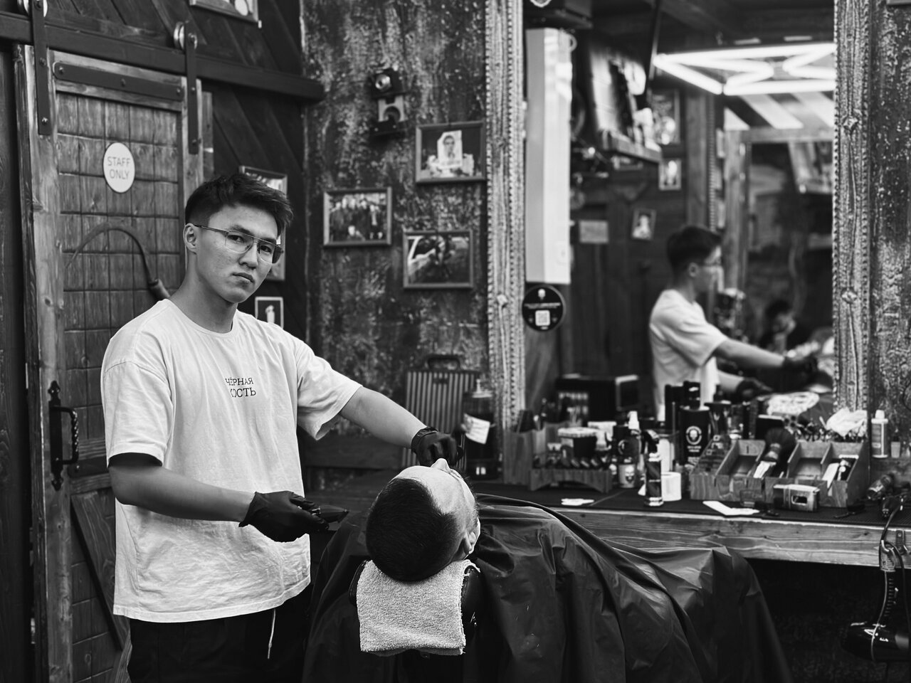 Хотелось бы выделить барбера Эсена, хожу к нему довольно долгое время, делает стрижки любой сложности, все всегда ровно и аккуратно!