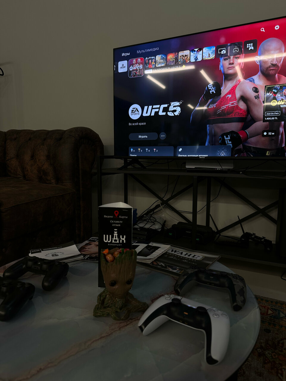 - Возможность поиграть в приставку (PlayStation) во время ожидания
