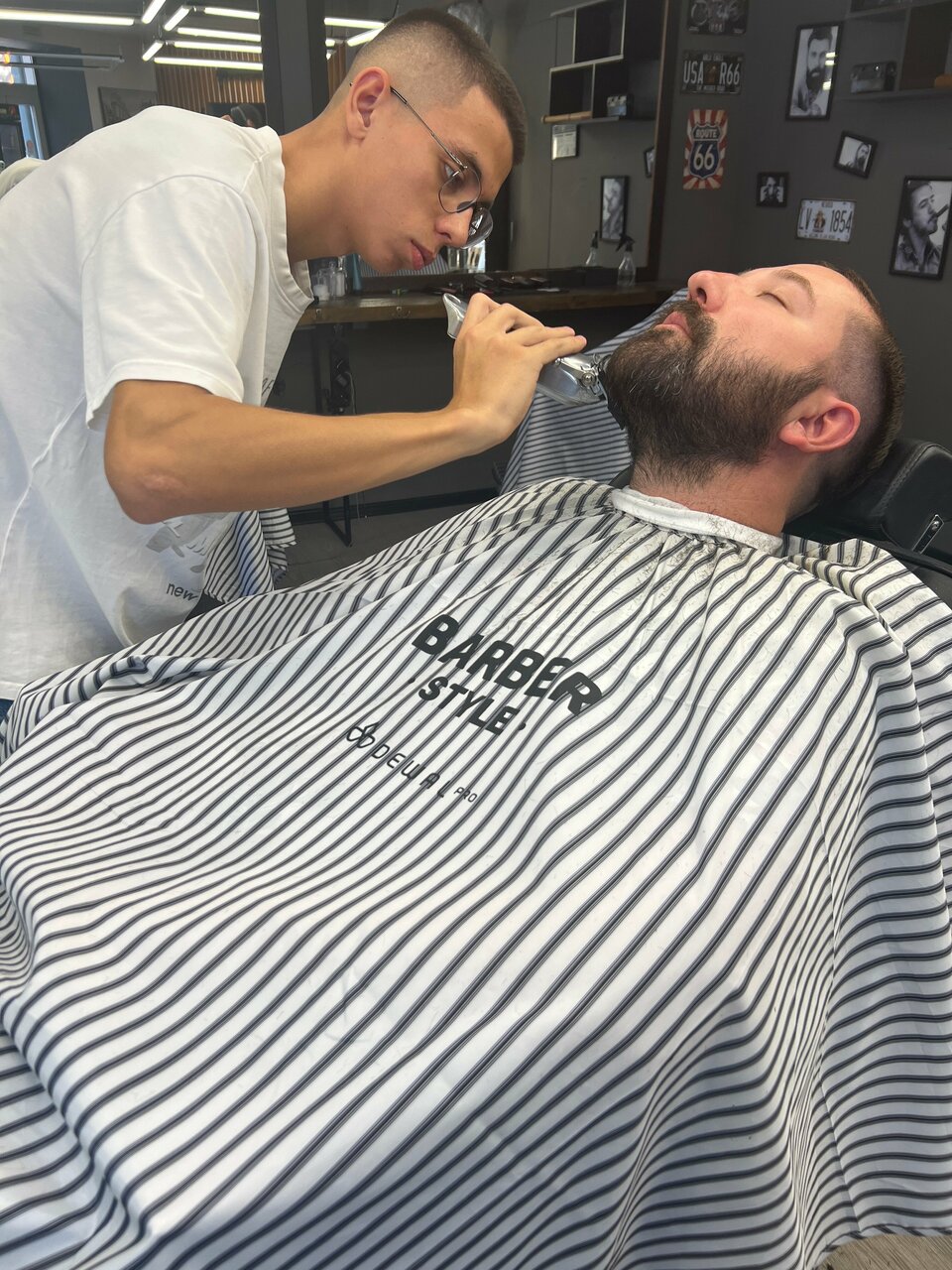 Быстро, чётко и здорово. Так ещё и волосы подлечили. Приятный барбер и беседа!