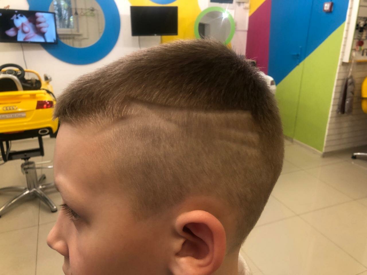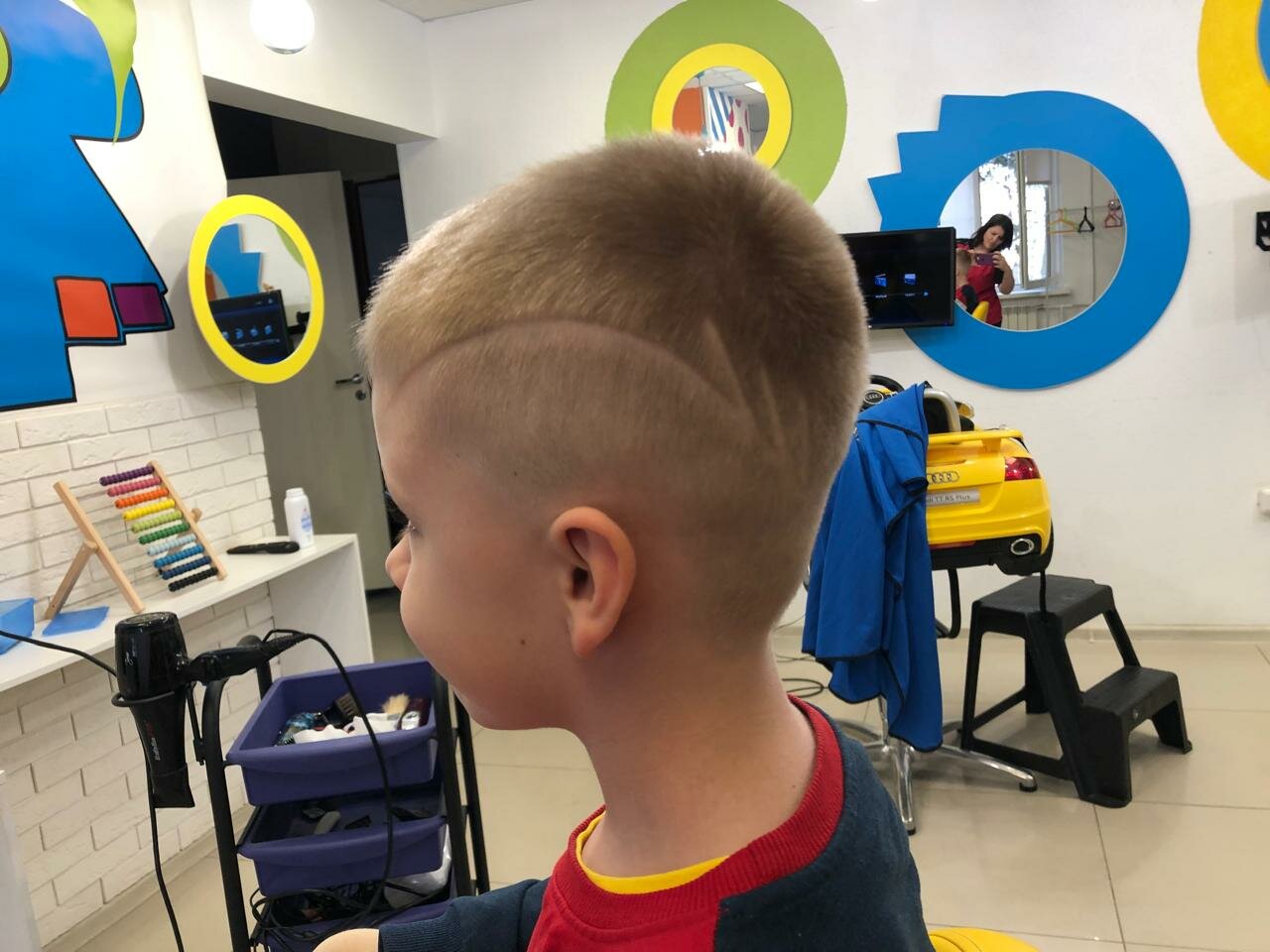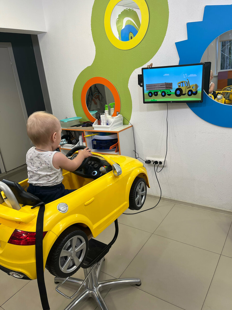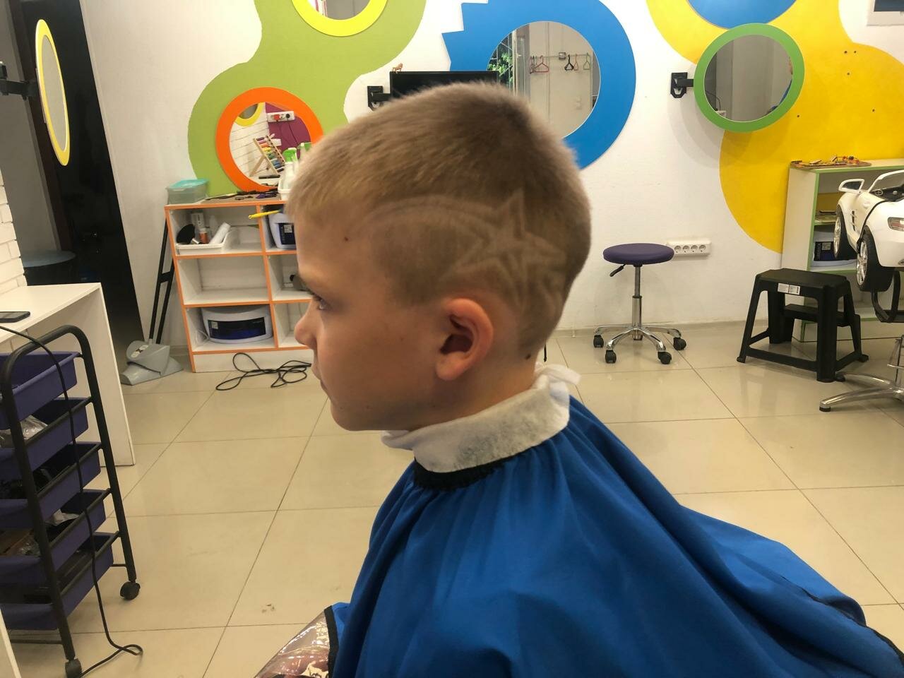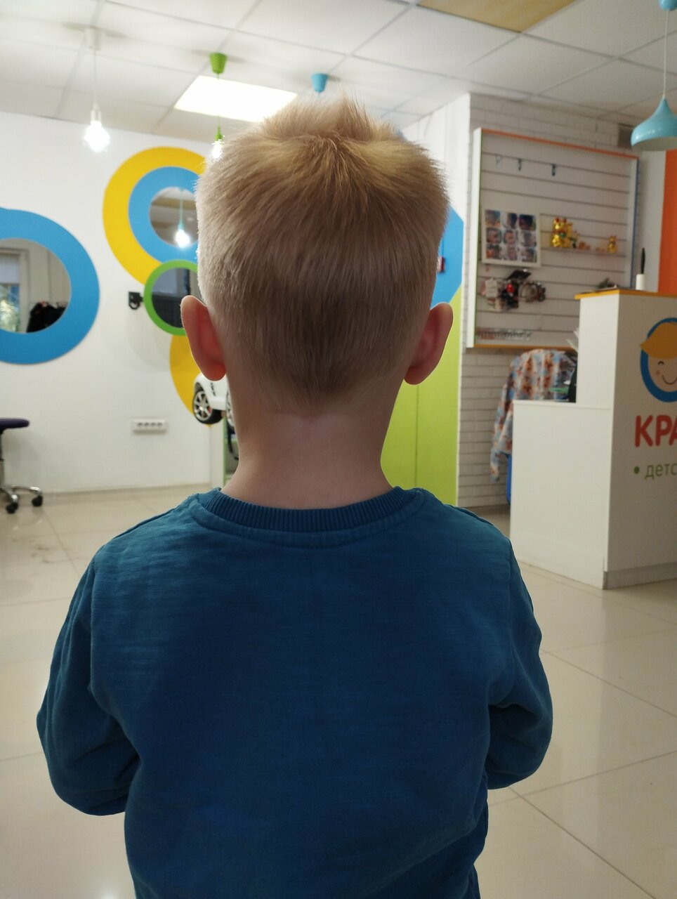 Салон классный 👍девушка быстро и красиво подстригла 3х лет мальчика. Всё предусмотрено для маленьких деток. Выбор мультфильма на экране. Машины разные. Рекомендую этот детский салон.