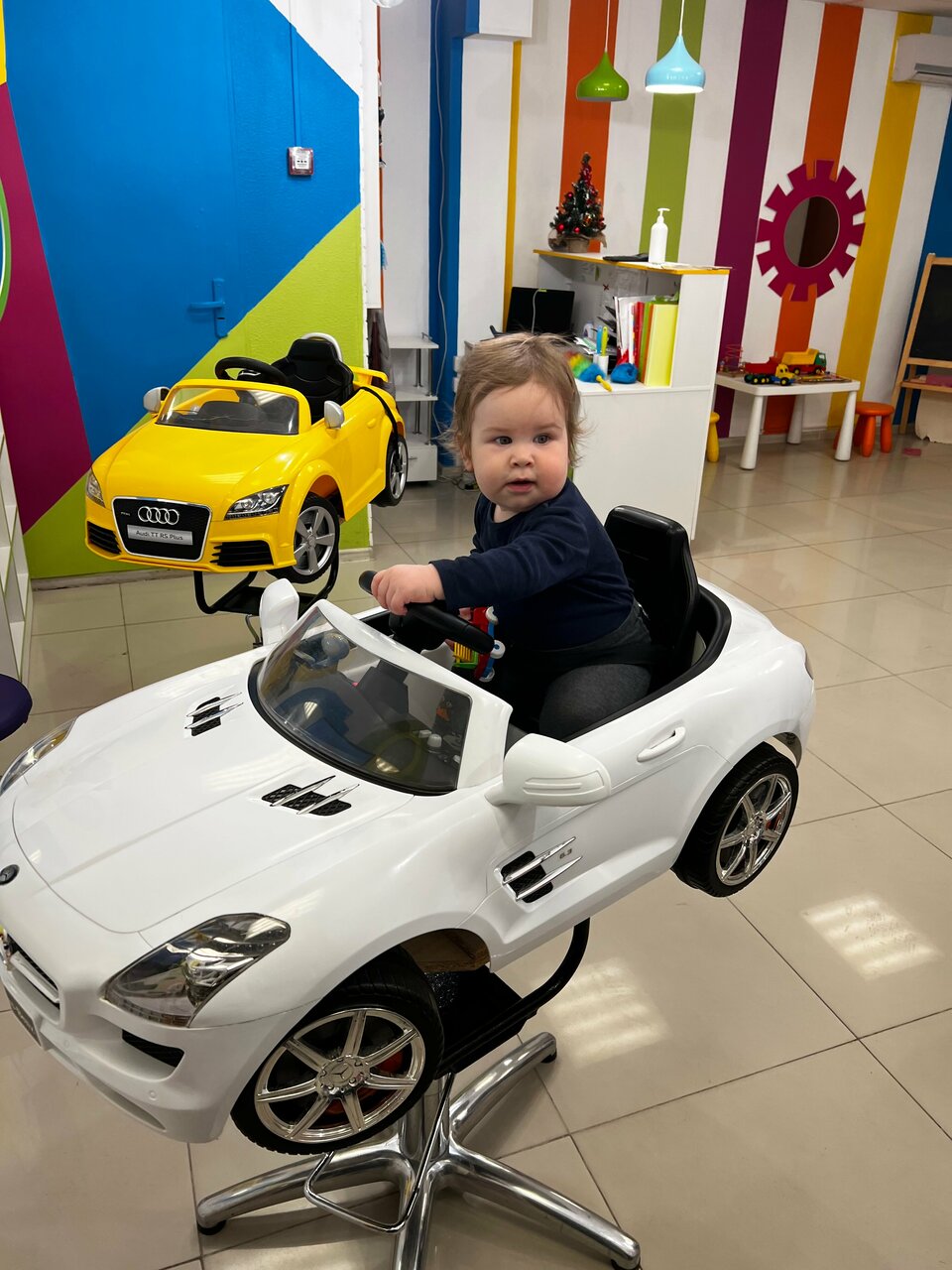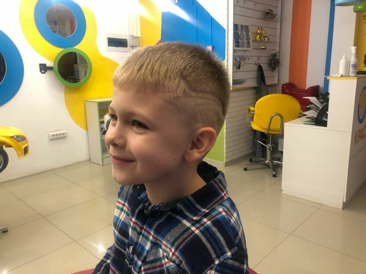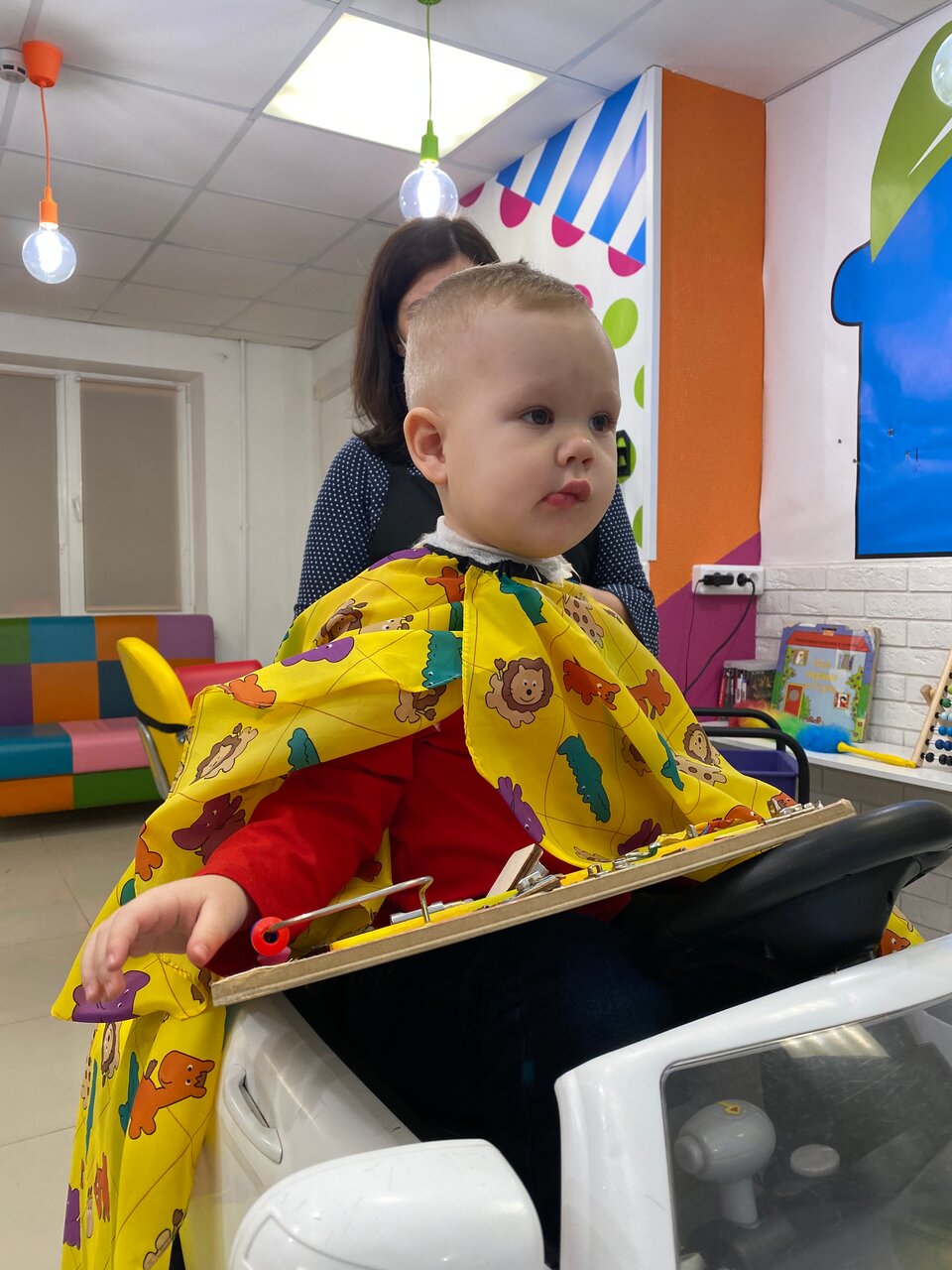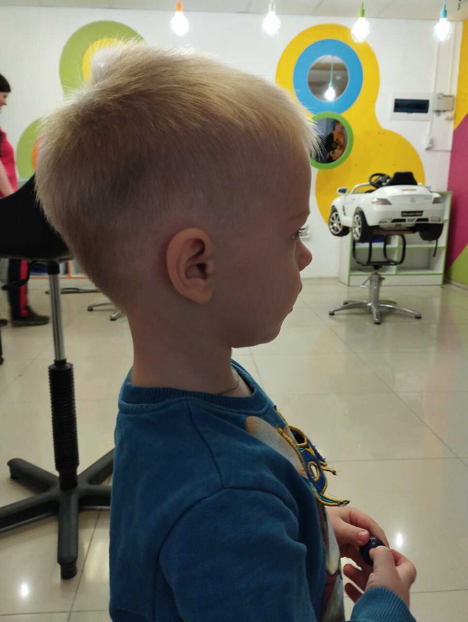 Салон классный 👍девушка быстро и красиво подстригла 3х лет мальчика. Всё предусмотрено для маленьких деток. Выбор мультфильма на экране. Машины разные. Рекомендую этот детский салон.