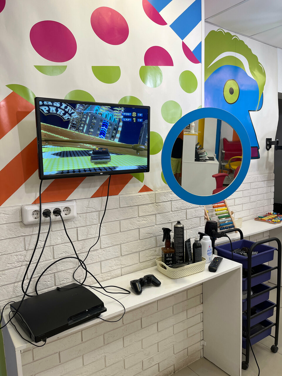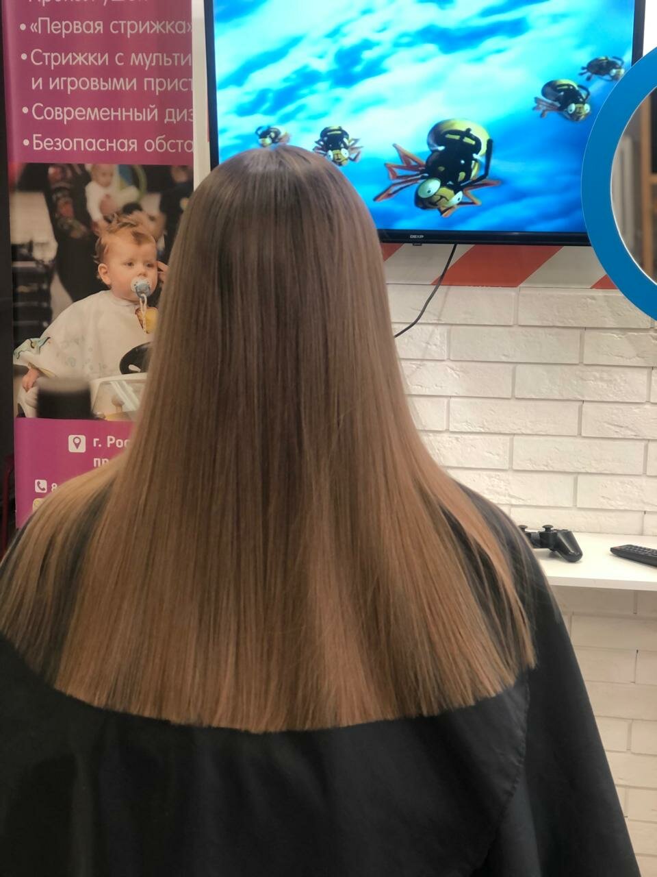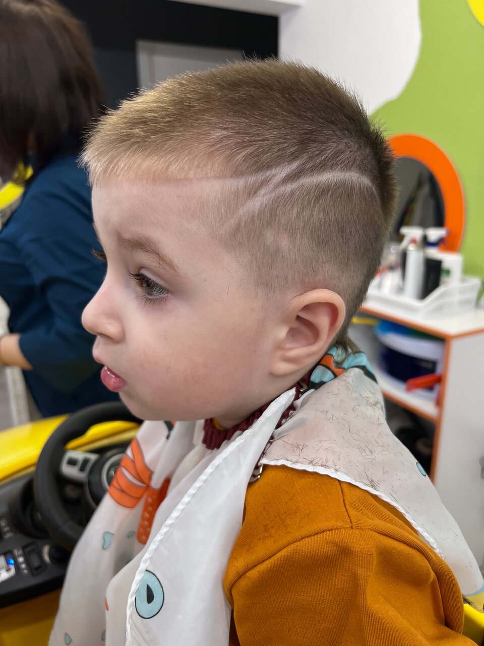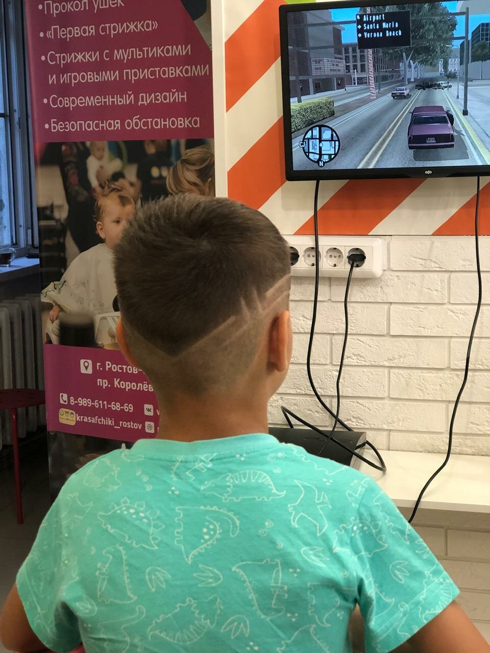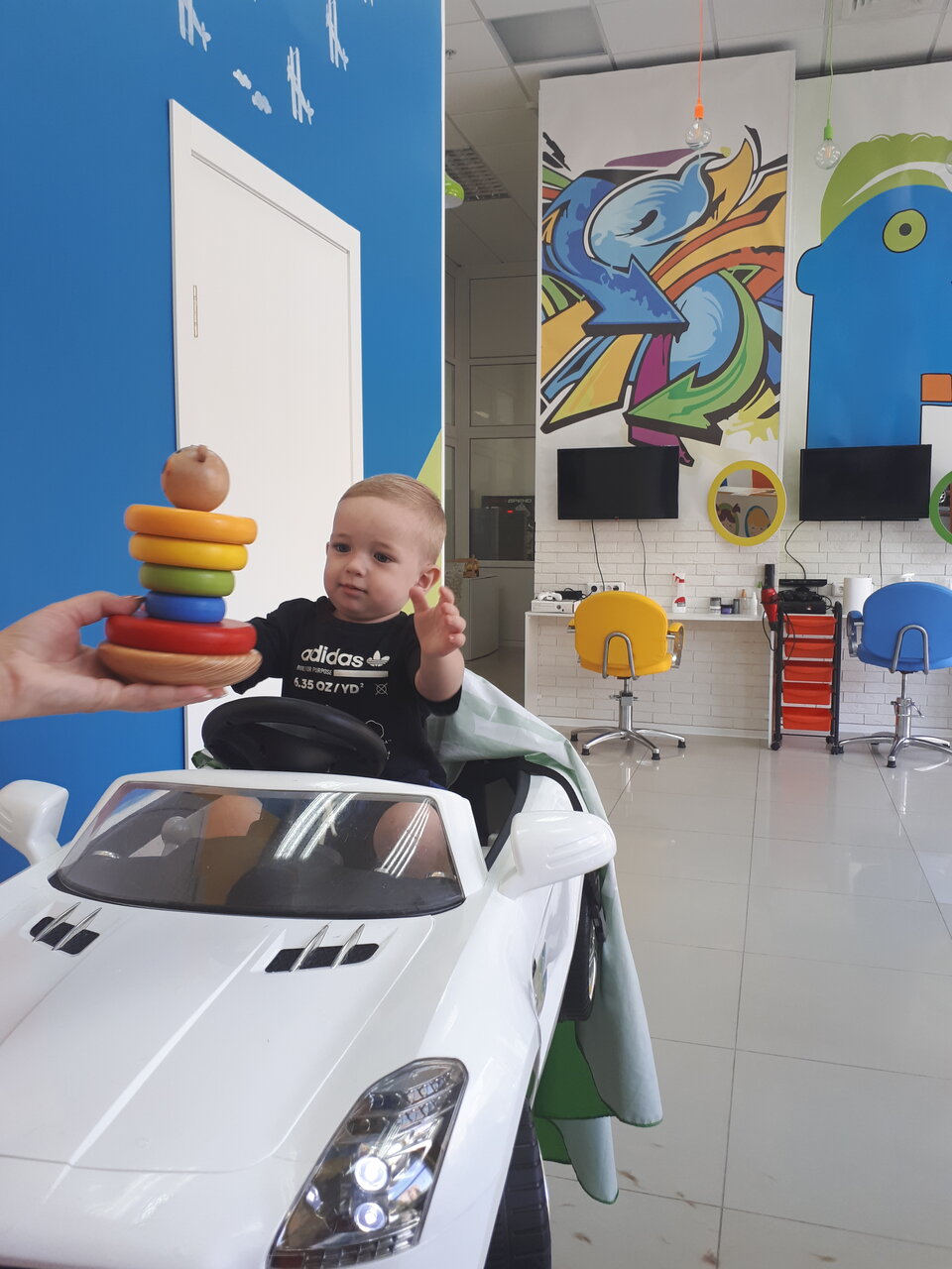 Салон классный 👍девушка быстро и красиво подстригла 3х лет мальчика. Всё предусмотрено для маленьких деток. Выбор мультфильма на экране. Машины разные. Рекомендую этот детский салон.