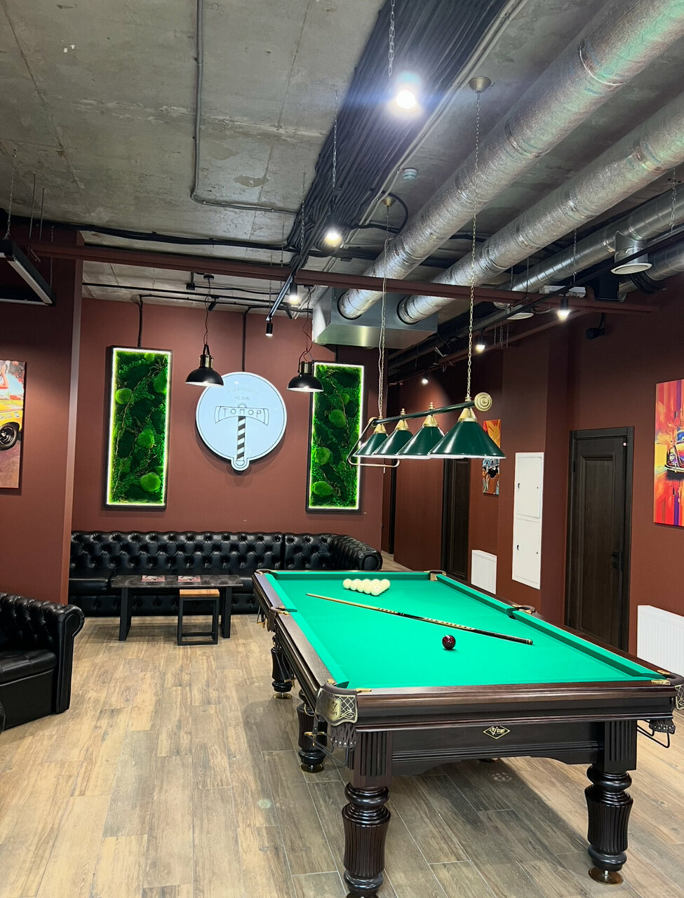- Развлечения для ожидающих (PS5, бильярдный стол)