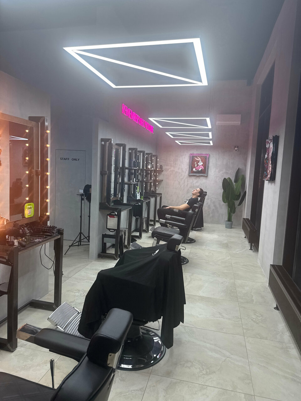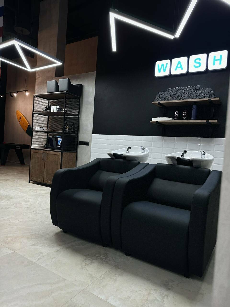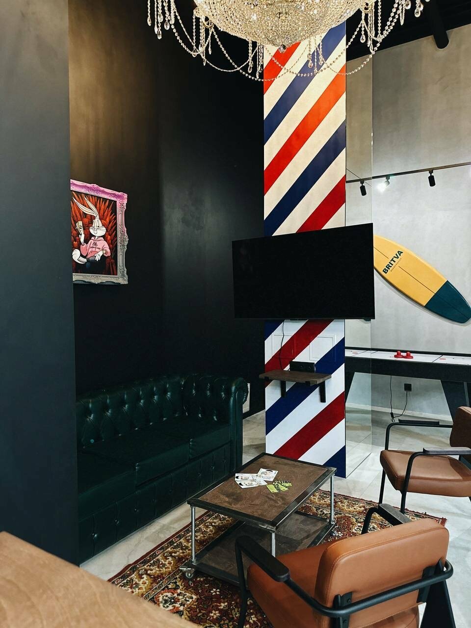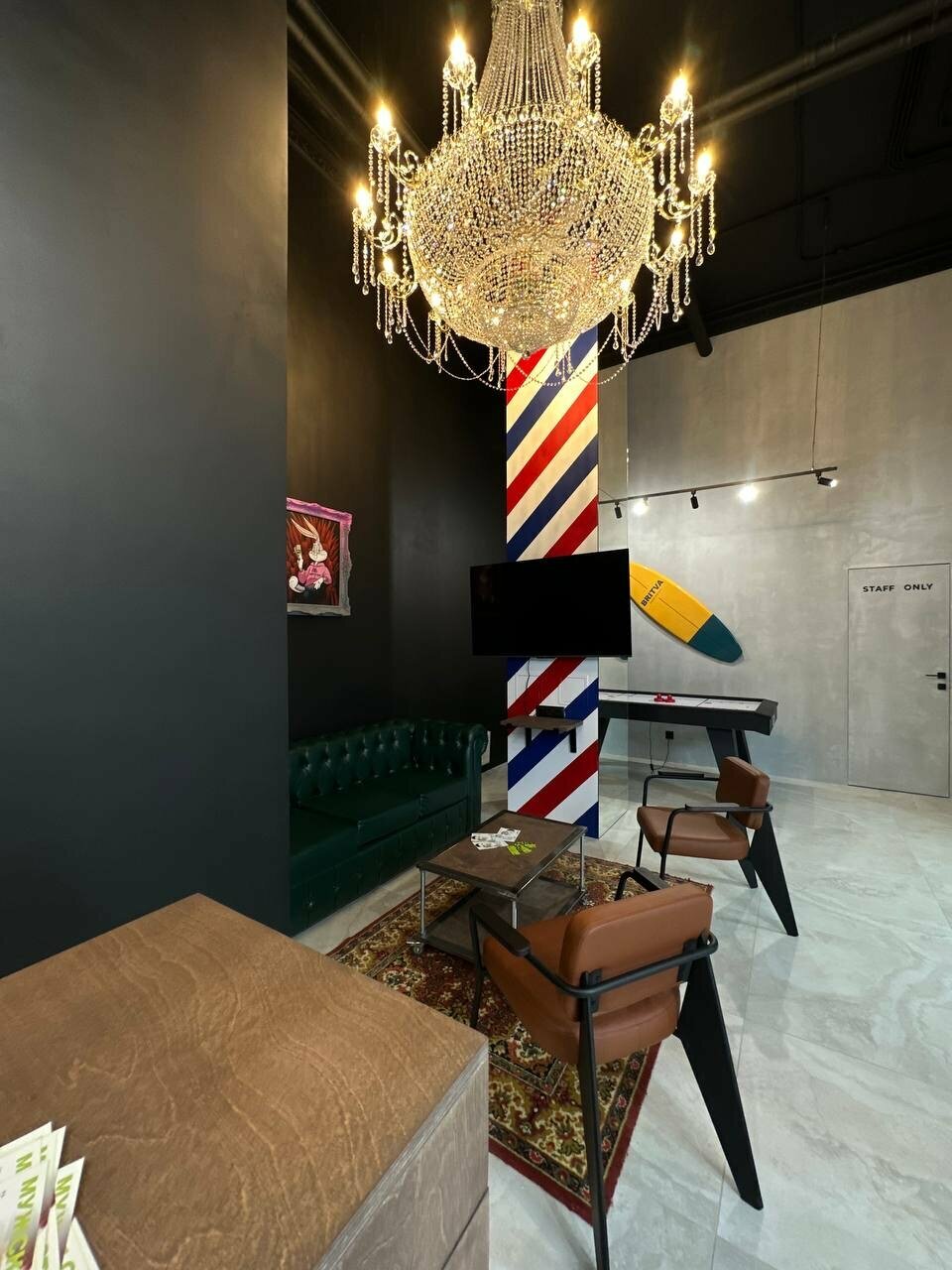 Крутой барбершоп, общительные и приветливые сотрудники Обслуживание на высоком уровне, а также очень крутая атмосфера