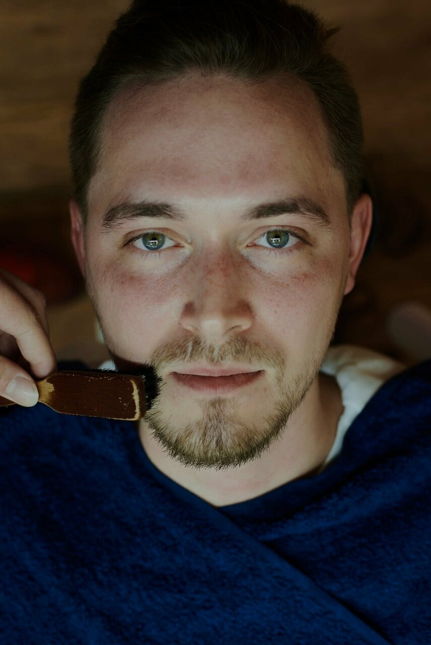 Проводится на отросшей бороде. Создание формы бороды с использованием ножниц, машинок. Работа с плотностью бороды. Распаривание лица с использованием эфирных масел.Формирование четких контуров путем подбривания опасной бритвой.