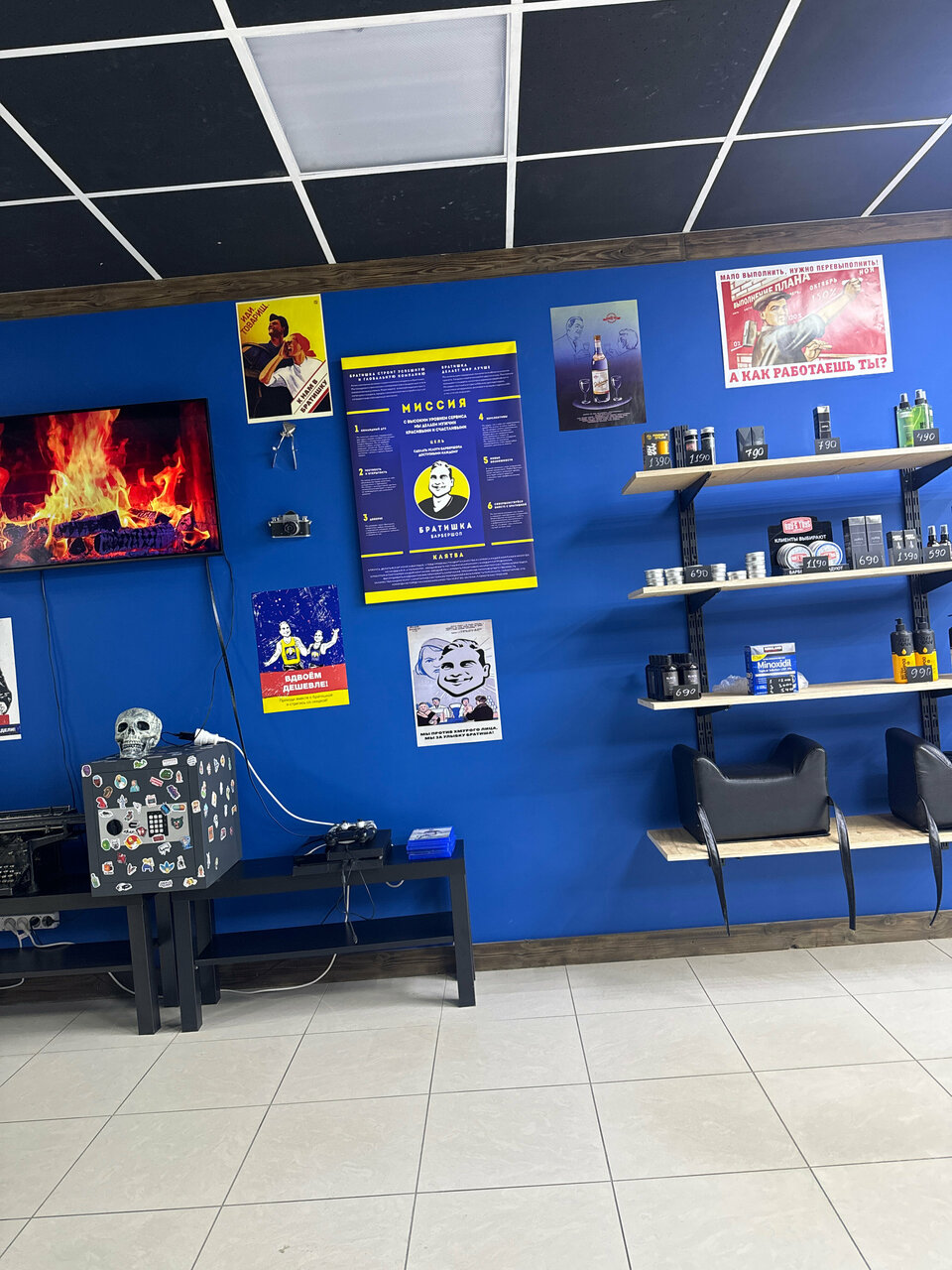 - Чистый, просторный и светлый барбершоп