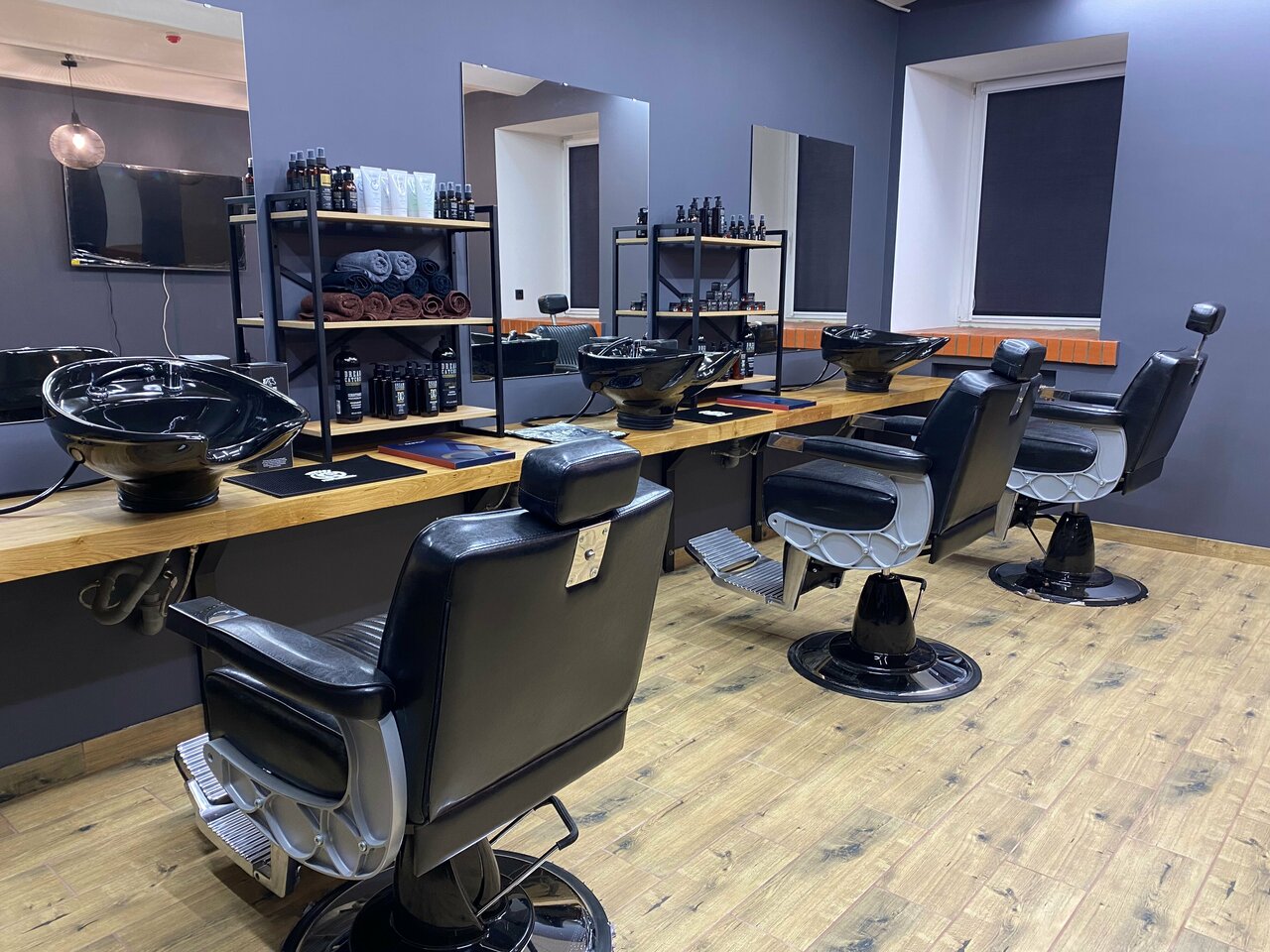 - Вежливый и приветливый персонал (администраторы и барберы)